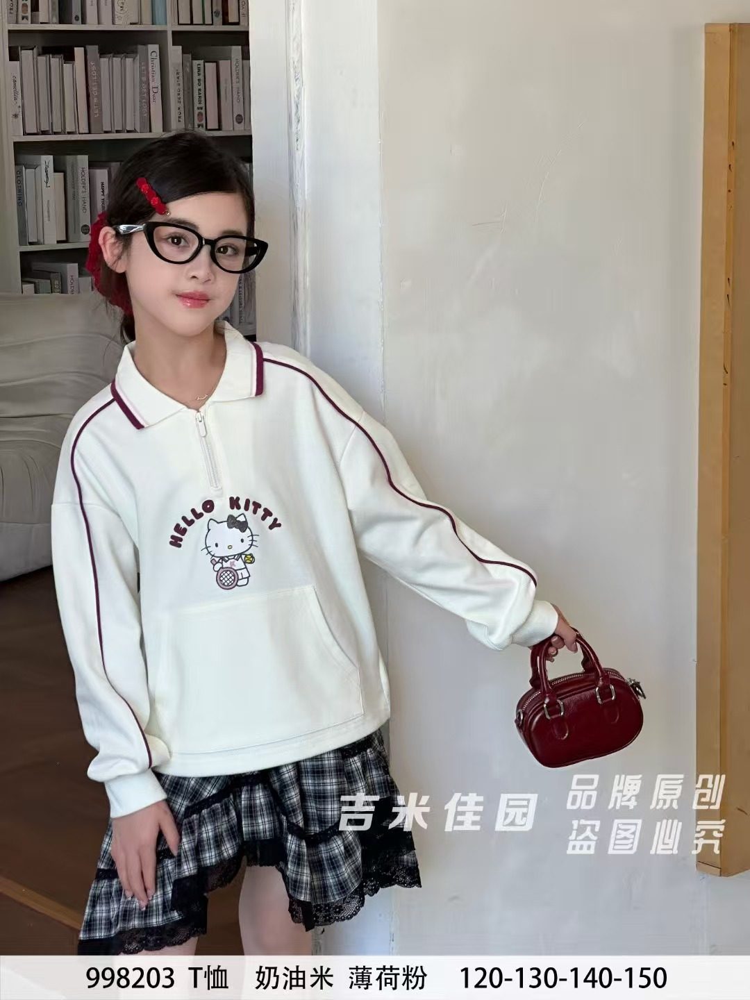 女童装秋2025新款休闲卫衣hellokitty图案印花洋气翻领大口袋上衣