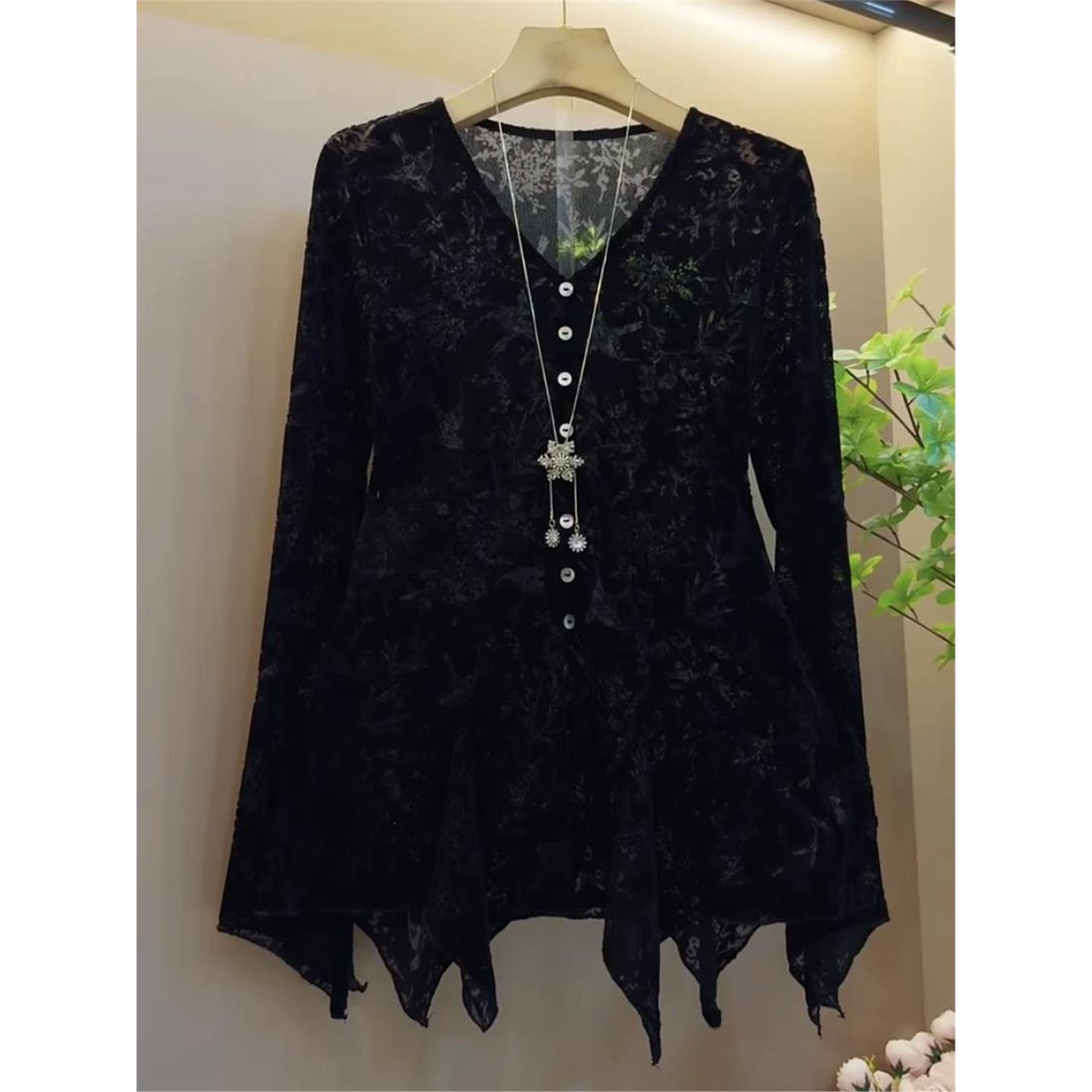 大码女装2025秋秋新款上衣女v领显瘦胖妹妹胖mm气质女士洋气长袖