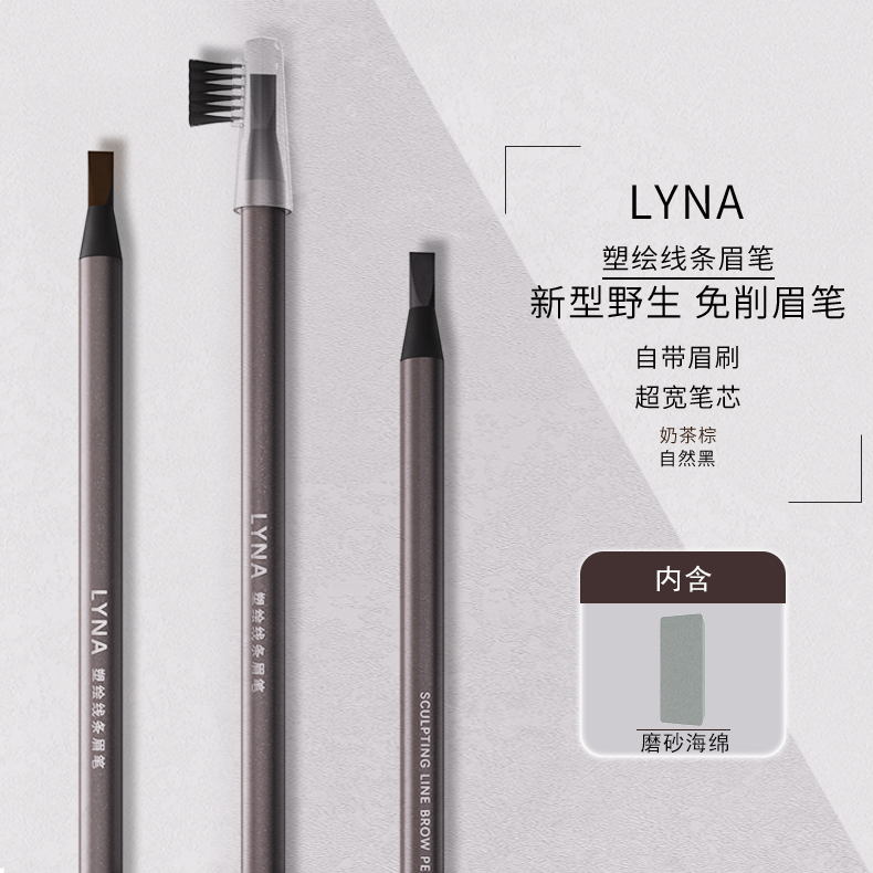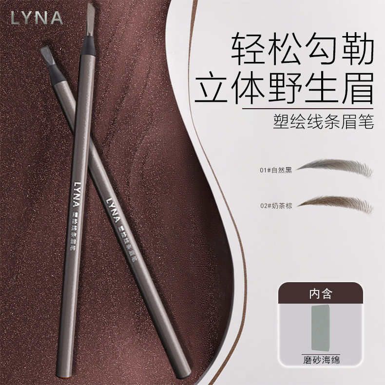 LYNA免削砍刀眉笔硬芯线条野生眉笔防水防汗免削眉笔化妆师眉笔