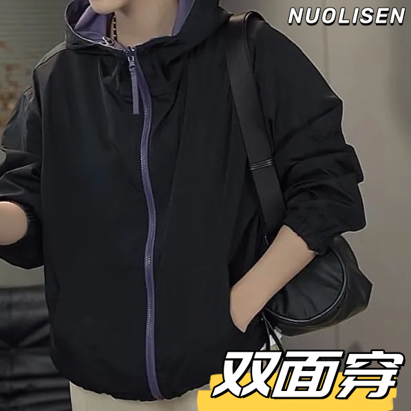 胖mm300斤两面穿设计连帽外套女春秋新款休闲时尚网红休闲外衣女