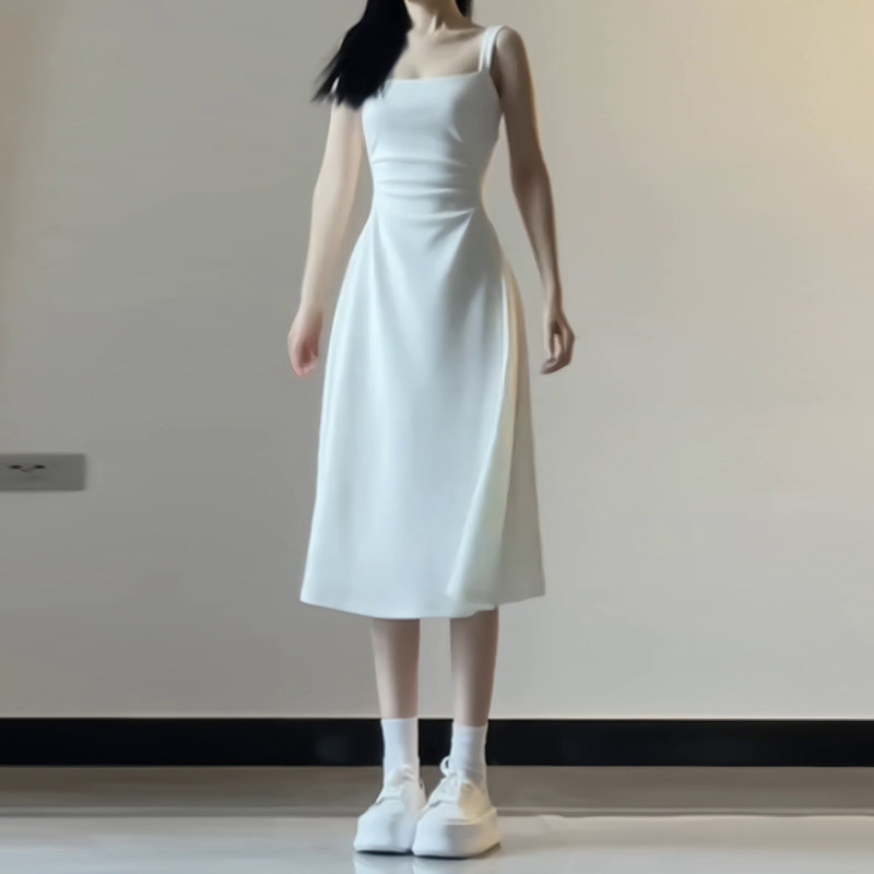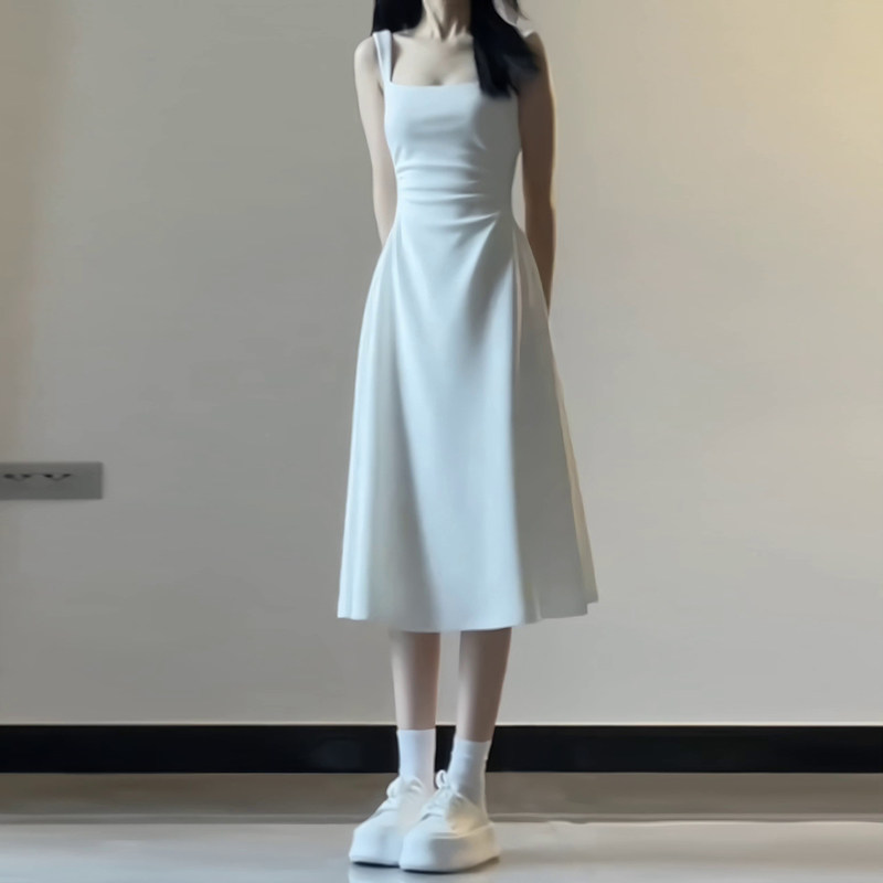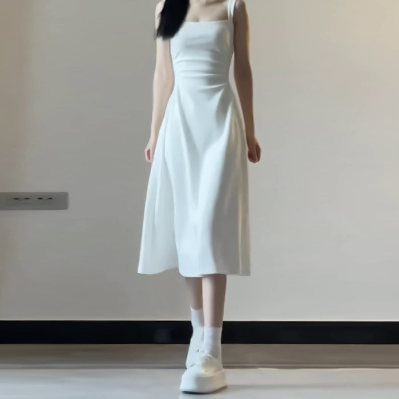 白色吊带连衣裙子女夏季2025新款小个子法式茶歇海边度假收腰长裙