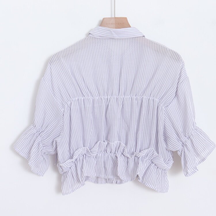 D19014日单新款GL单排扣花边微宽松显瘦女甜美气质条纹短款衬衫