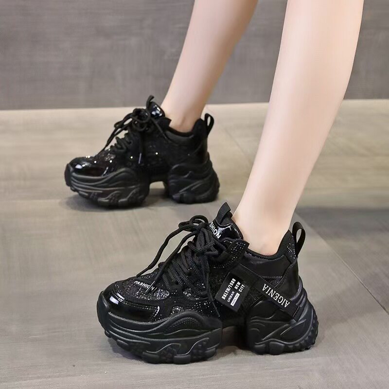 情侣鞋网红时尚亮片老爹鞋女厚底2025冬季新款透气百搭休闲运动鞋