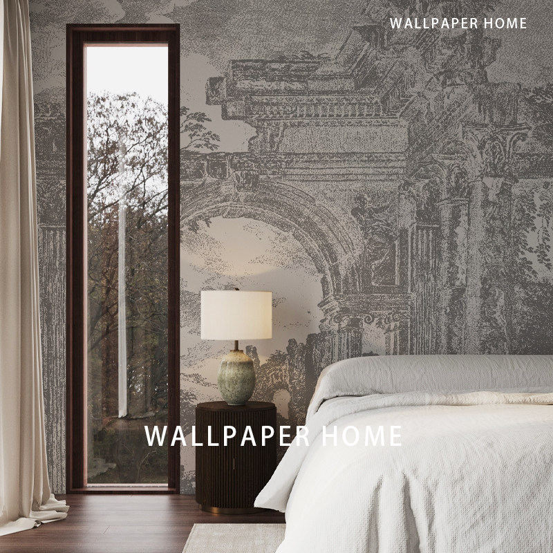 小红书定制法式墙纸复古欧式建筑定制壁画卧室客厅背景墙床头壁布
