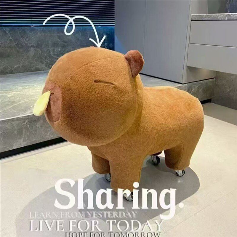卡皮巴拉溜溜凳呆萌动物造型板凳带轮子儿童毛绒坐墩搞怪生日礼物