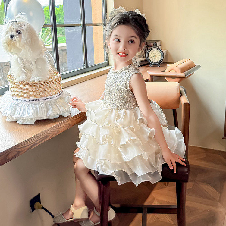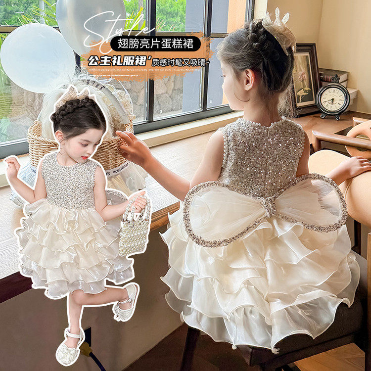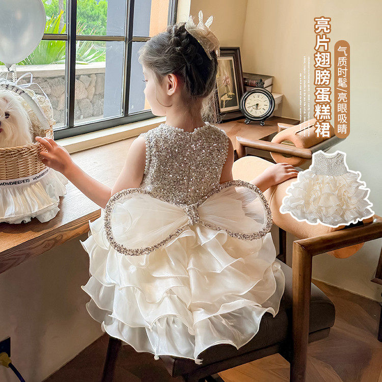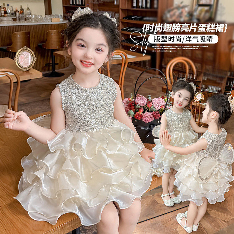 女童无袖亮片公主裙夏季薄款网纱蛋糕裙中裙蓬蓬裙