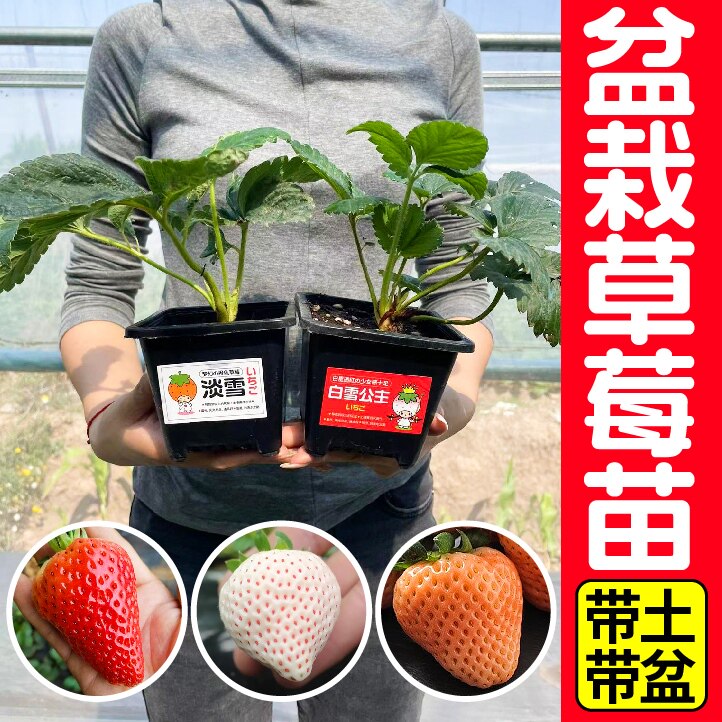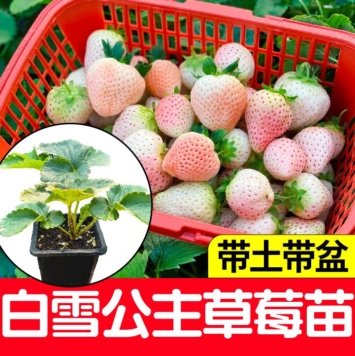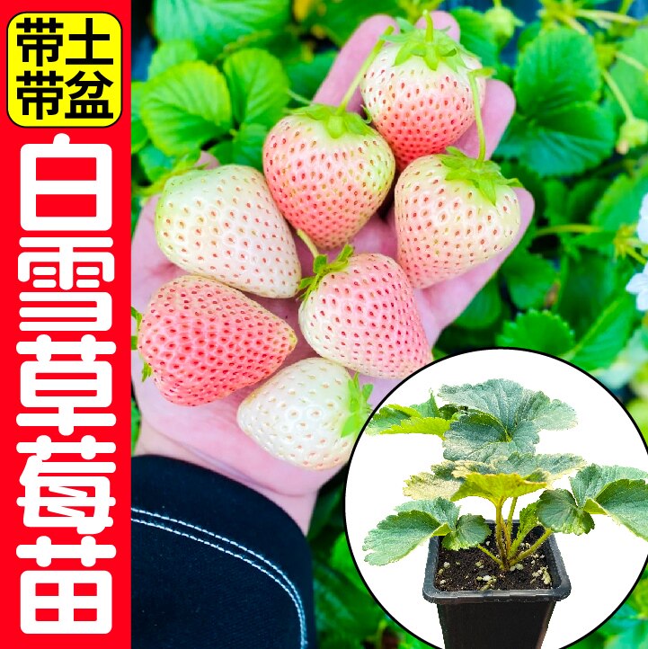 奶油白雪公主白草莓苗秧带原土原盆发新苗对版四季阳台盆栽多年生