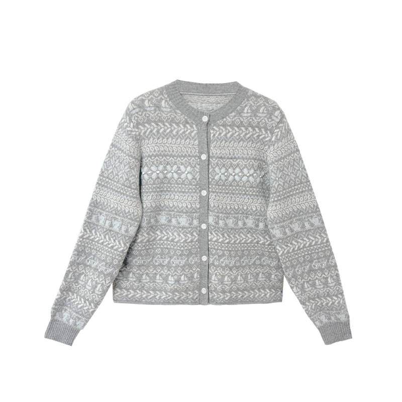 【橙庐】502519手工绣花绵羊毛针织开衫 春秋女甜美钩花时尚休闲