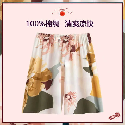 裤沙滩棉绸绵绸五分裤新款女士夏季居家可外穿不掉色短裤休闲时尚