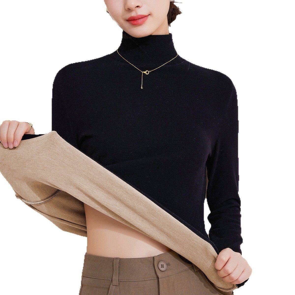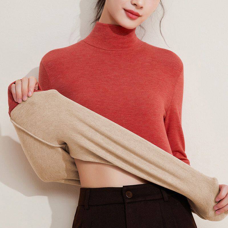 上衣新高领女德绒发热加绒长袖蚕丝2025冬打底衫羊毛t恤加厚保暖