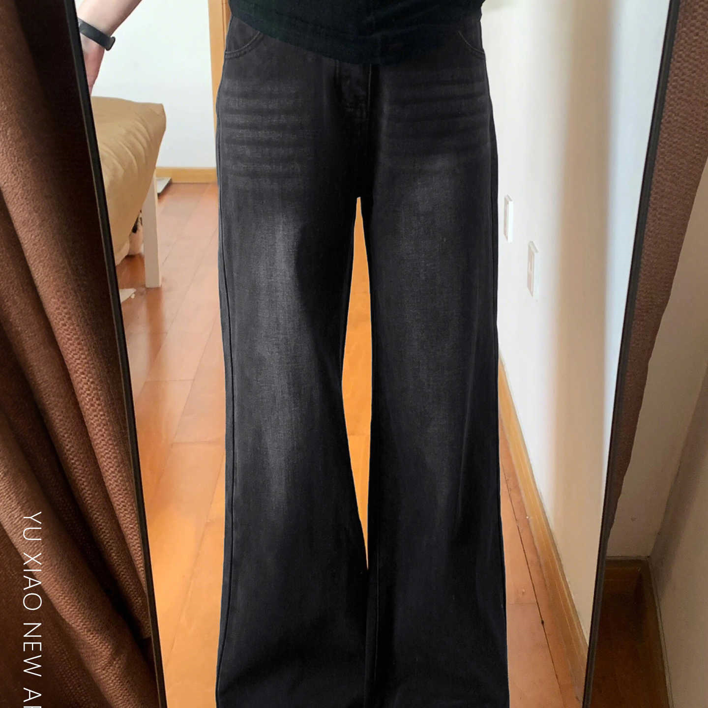 首页> 女装> 黑灰色阔腿牛仔裤女秋季新款宽松大码胖mm显瘦梨形身材拖地直筒裤