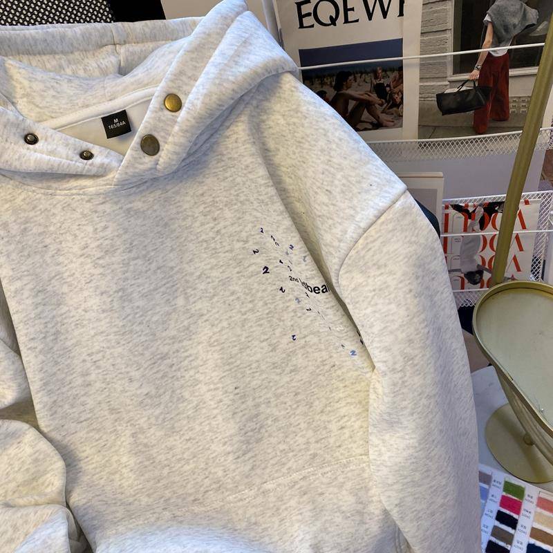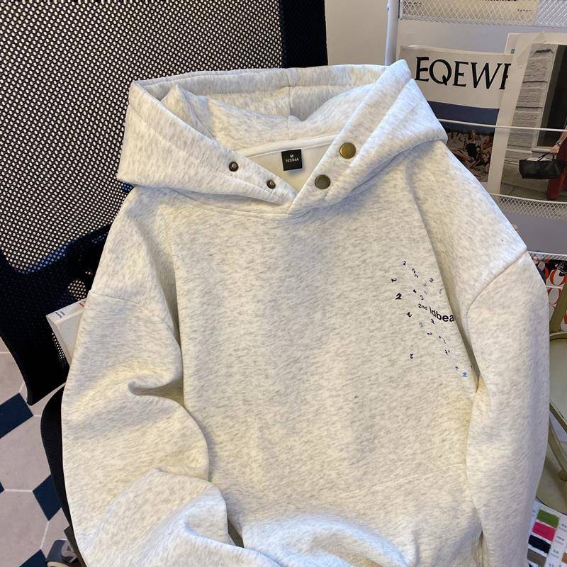 白灰色纽扣连帽卫衣女2025年新款春秋宽松美式复古潮牌设计感外套