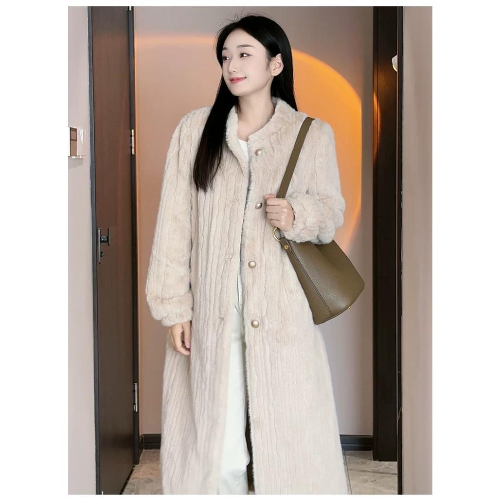 皮草外套女新款复古风加棉加厚环保仿貂绒大衣长款立领年轻高级感