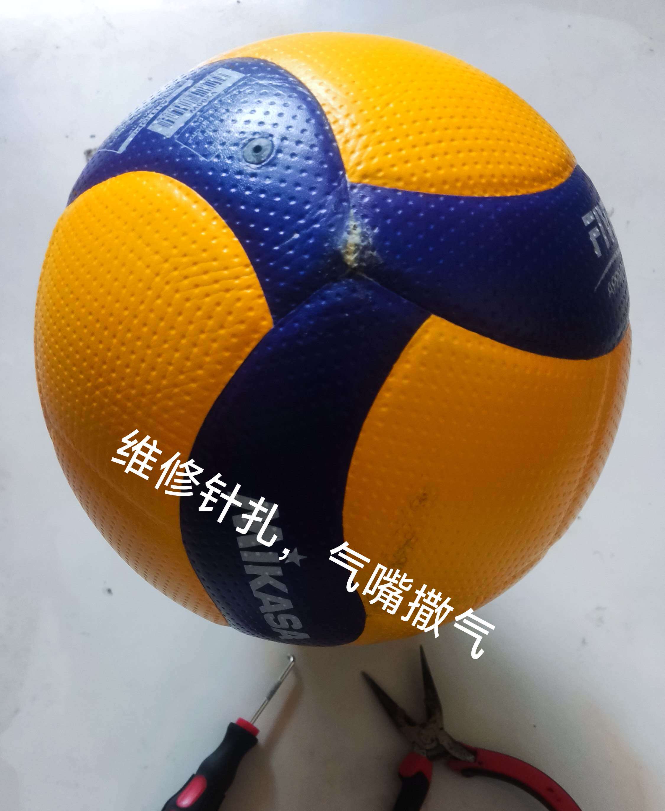 专修米卡萨排球5号V200W维修更换球嘴慢跑气气门芯气嘴漏气针扎漏