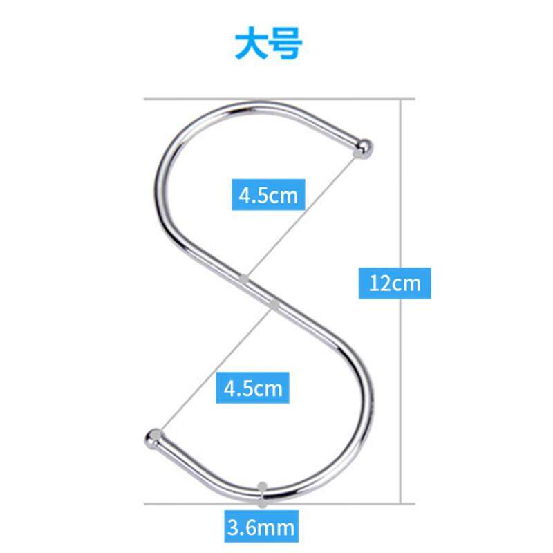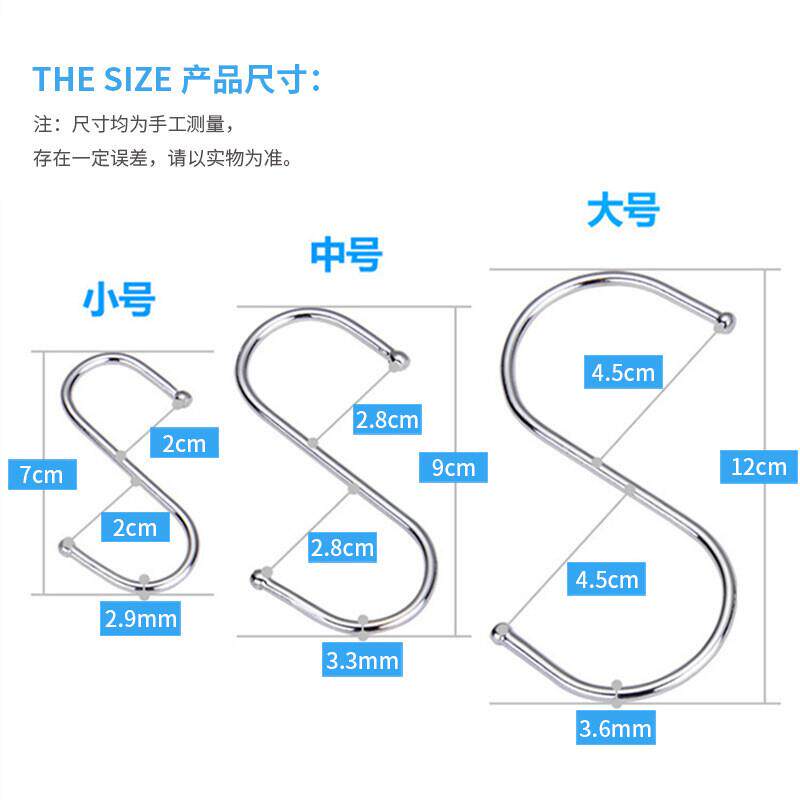 马沃斯不锈钢挂钩厨房浴室S型挂钩衣橱衣服金属挂勾大号12CM(10个