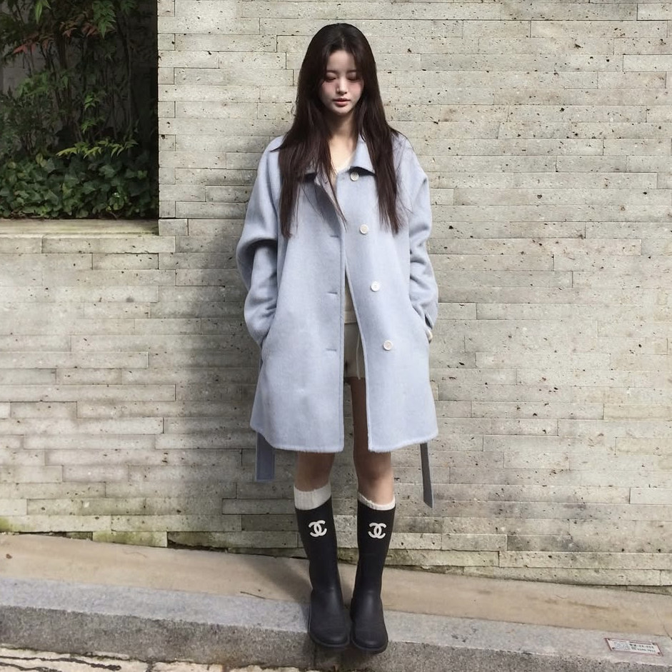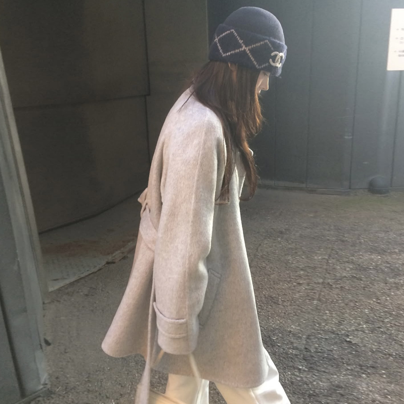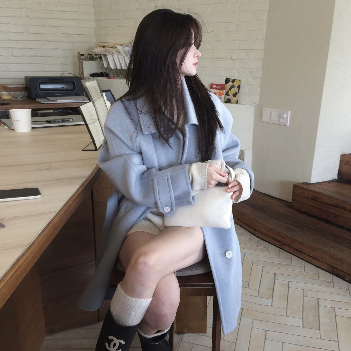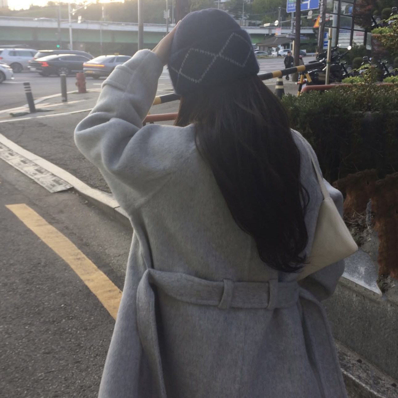 韩系温柔气质优雅百搭翻领系带收腰保暖毛呢外套大衣