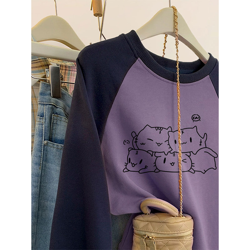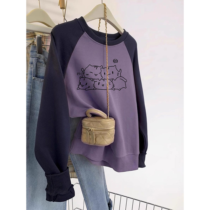 高级感无帽卫衣女秋冬加绒宽松胖mm大码山东即墨外套上衣服小个子
