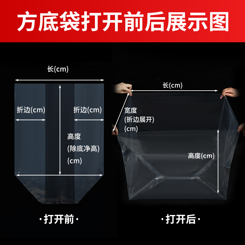 pe方形塑料四方袋立体方底袋透明防潮加厚纸箱内膜袋厂家直销现货