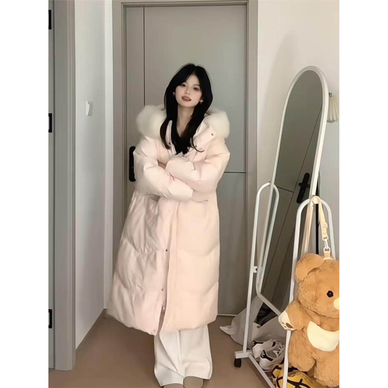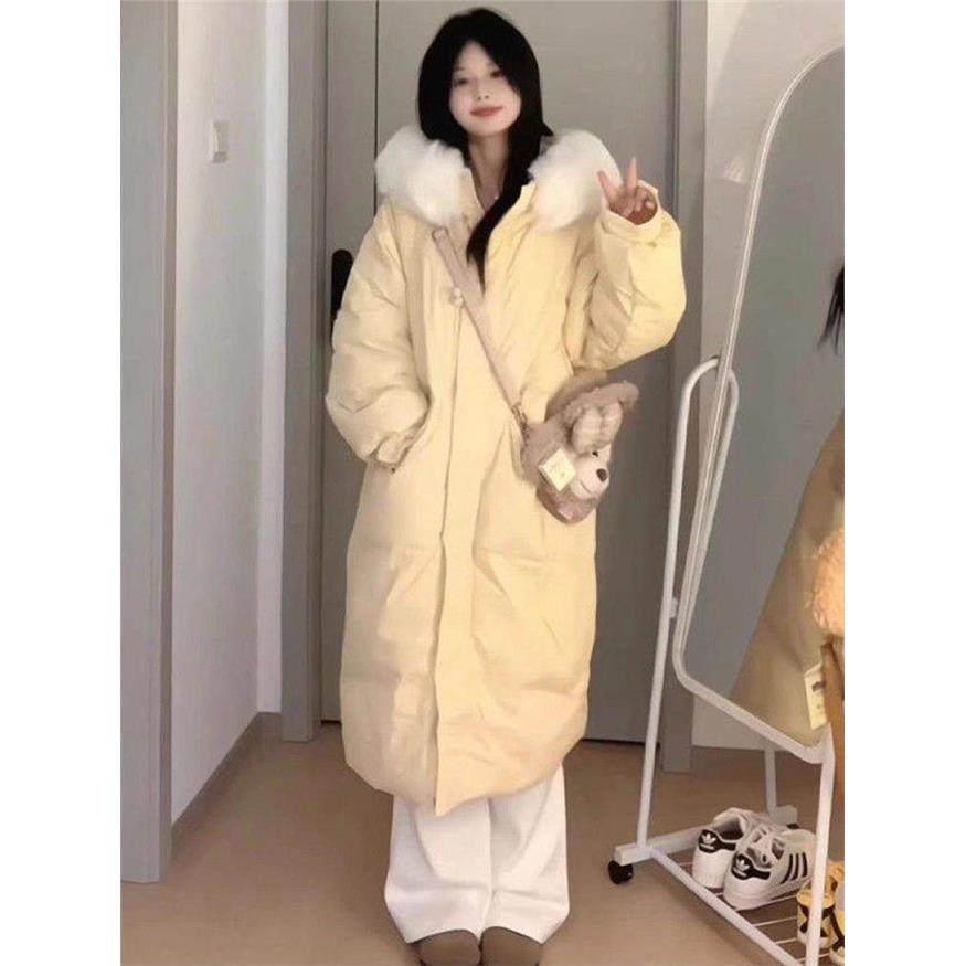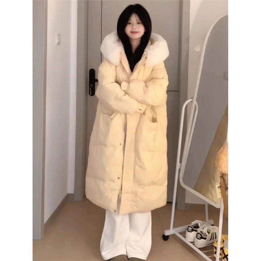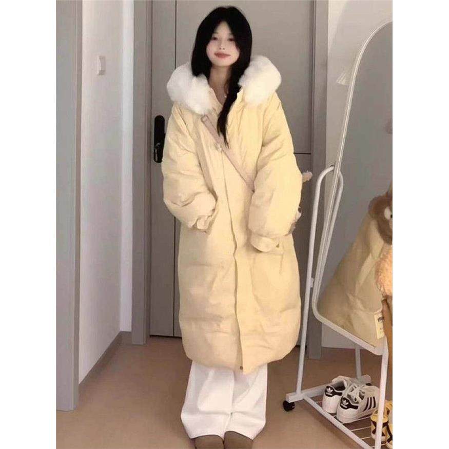 大毛领羽绒服中长款棉服女2025新款冬季宽松过膝棉衣加厚棉袄外套