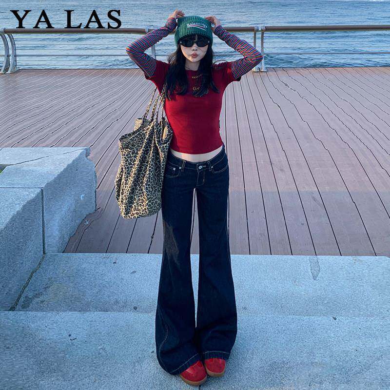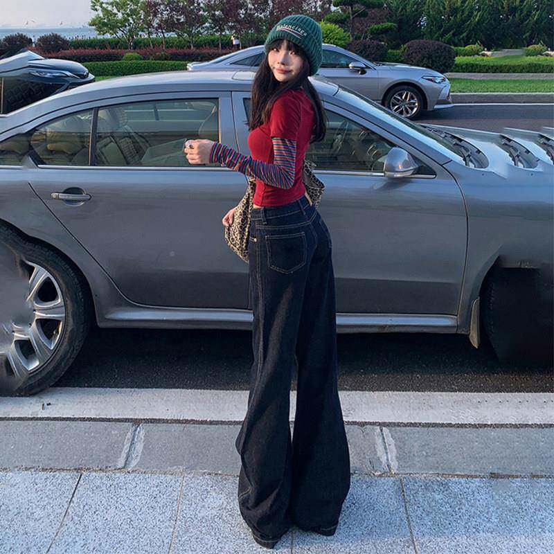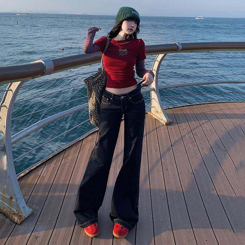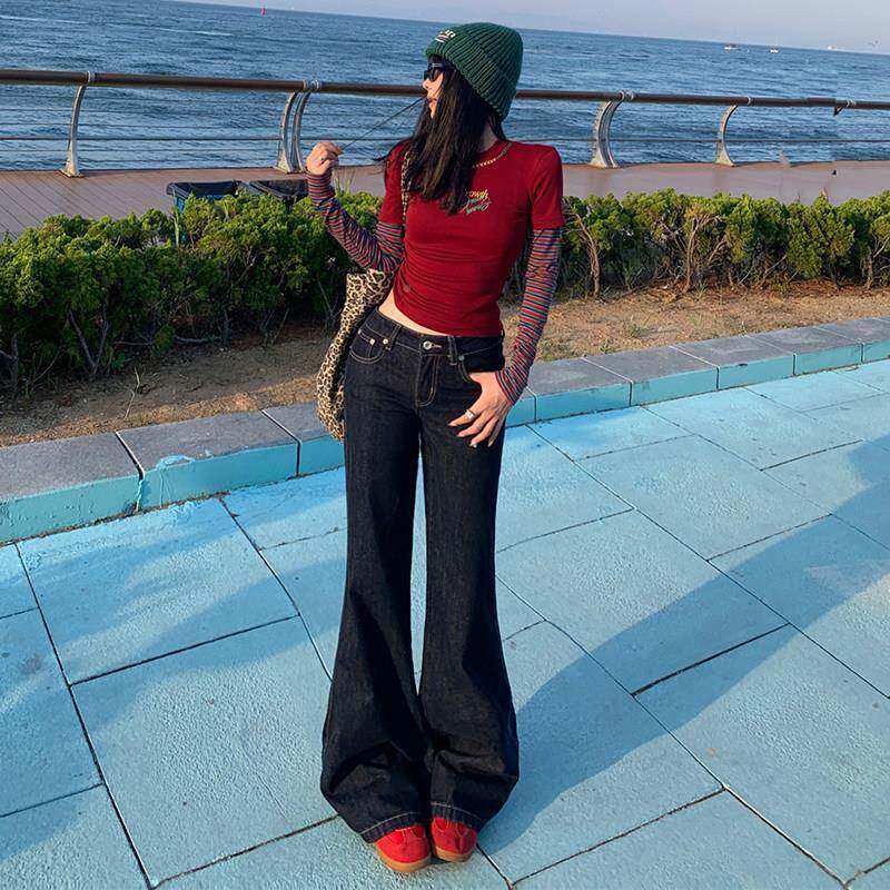 覆薄古JKK深裤色腿微喇牛仔女2025夏季款低腰宽松垂感不贴拖地直