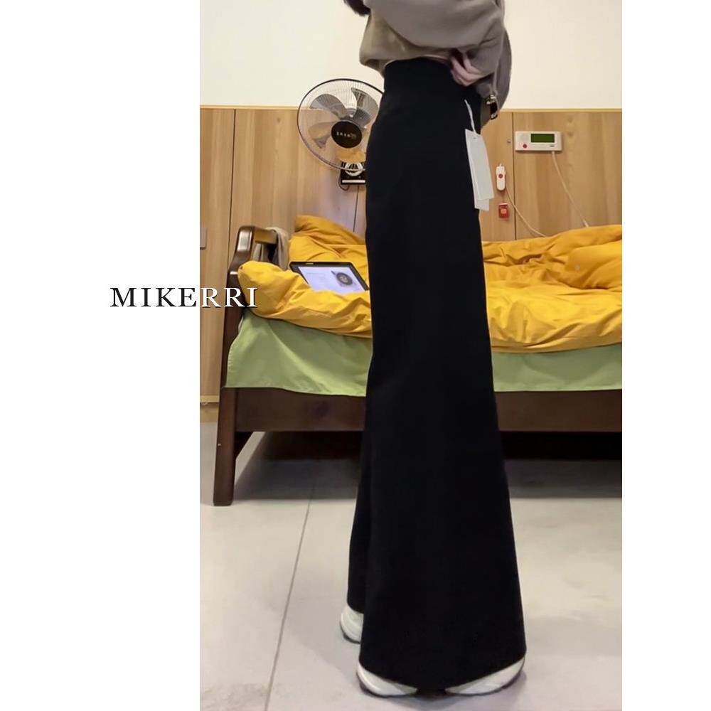 RKU黑胖色A版阔牛仔腿裤女夏季新款大码mm松显瘦梨形身材直宽筒裤