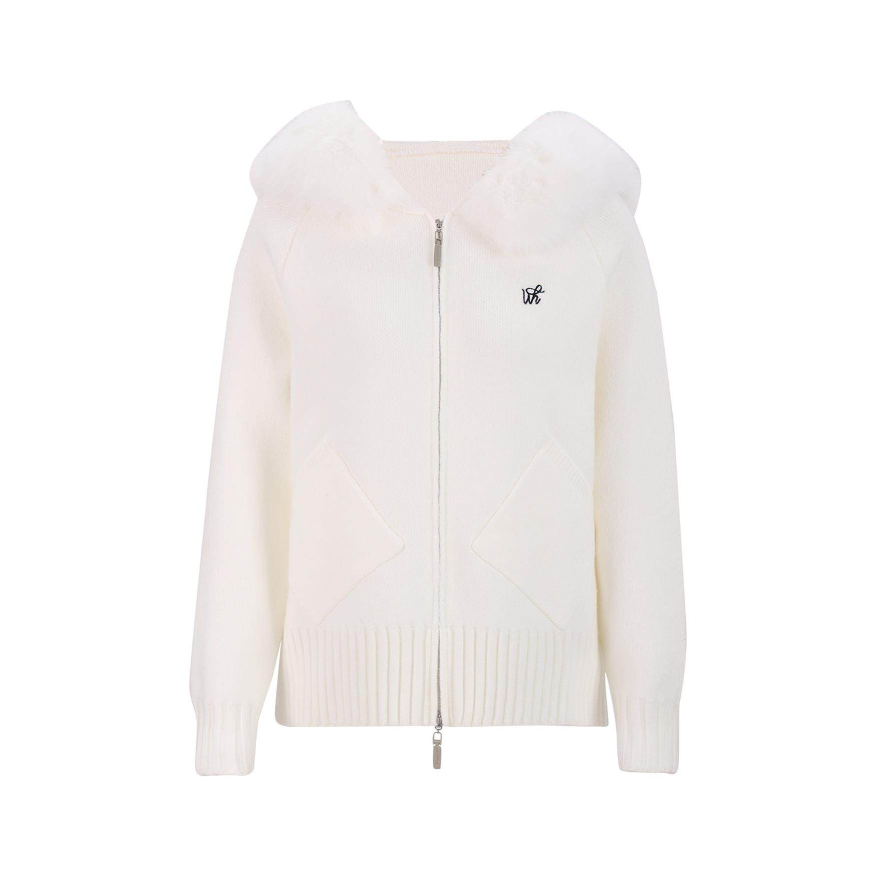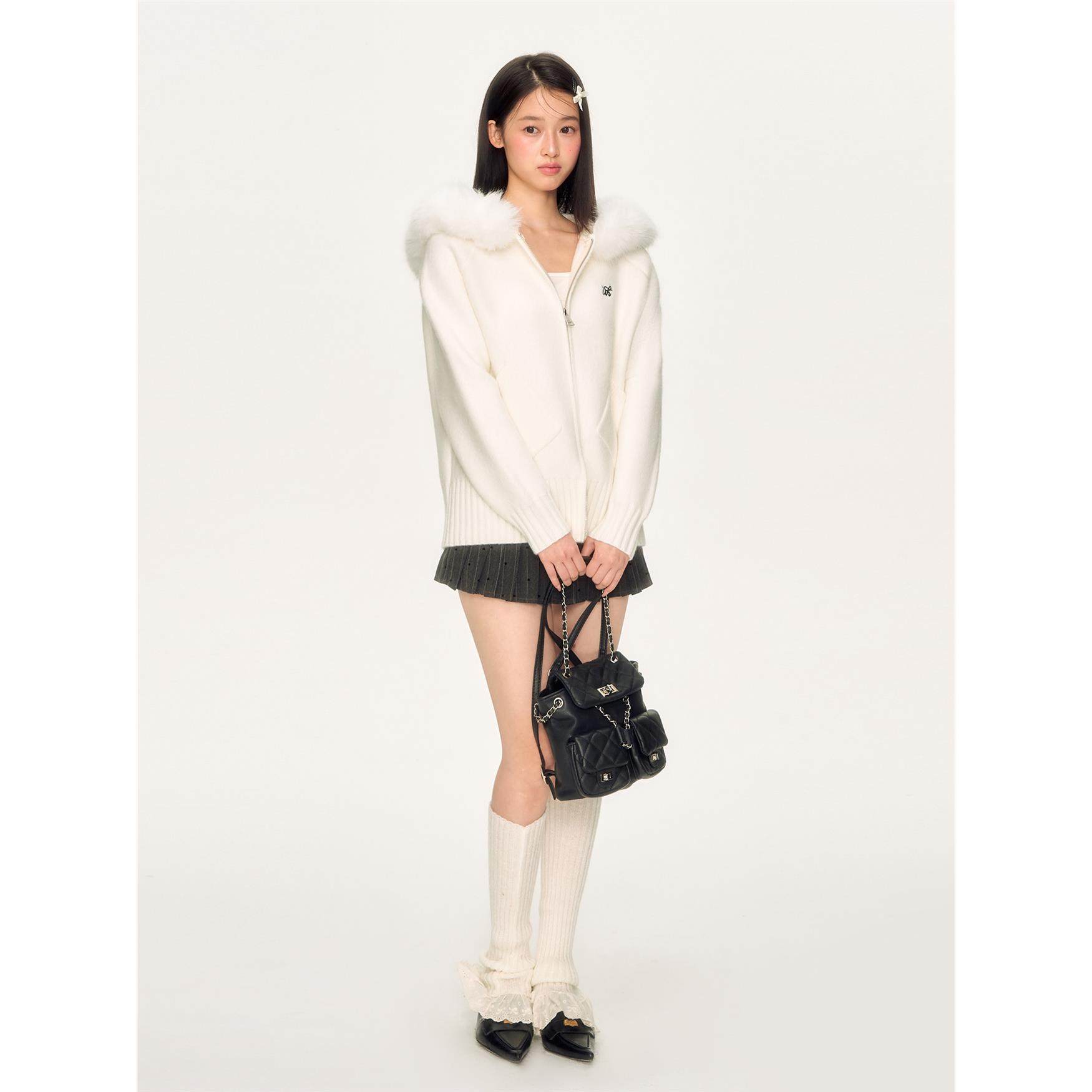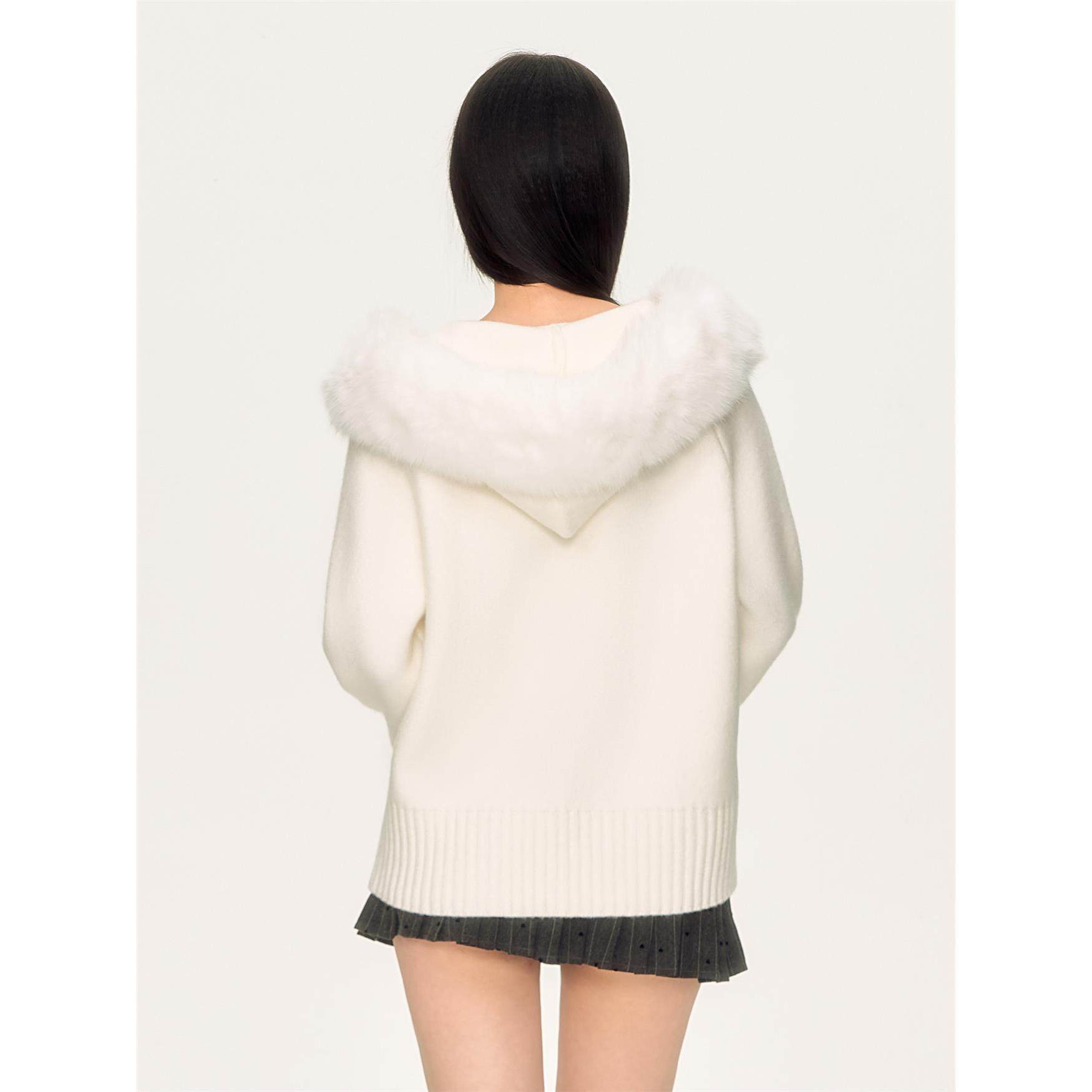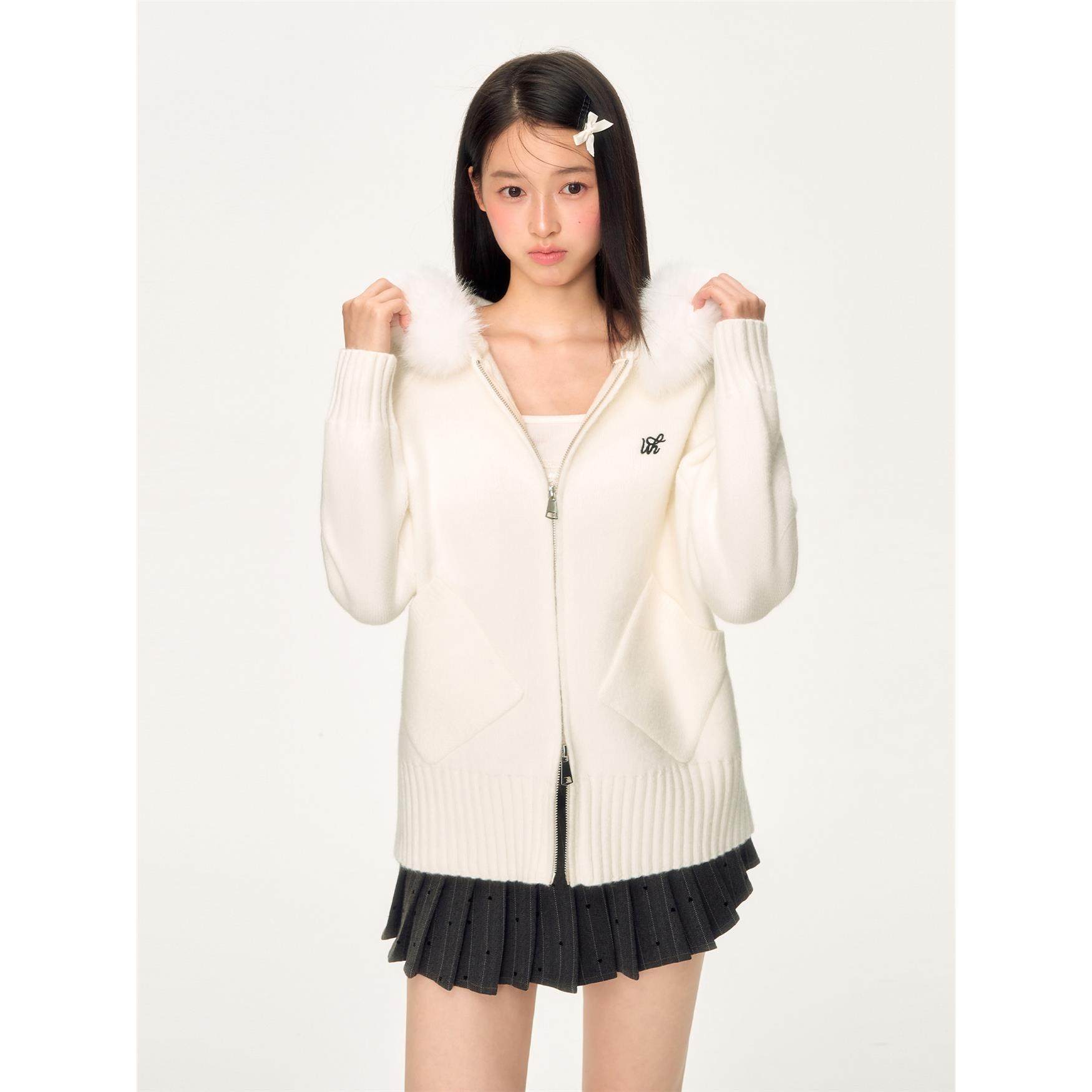 weekendhub软糯慵懒风连帽毛领针织衫女春秋新款休闲百搭毛衣外套