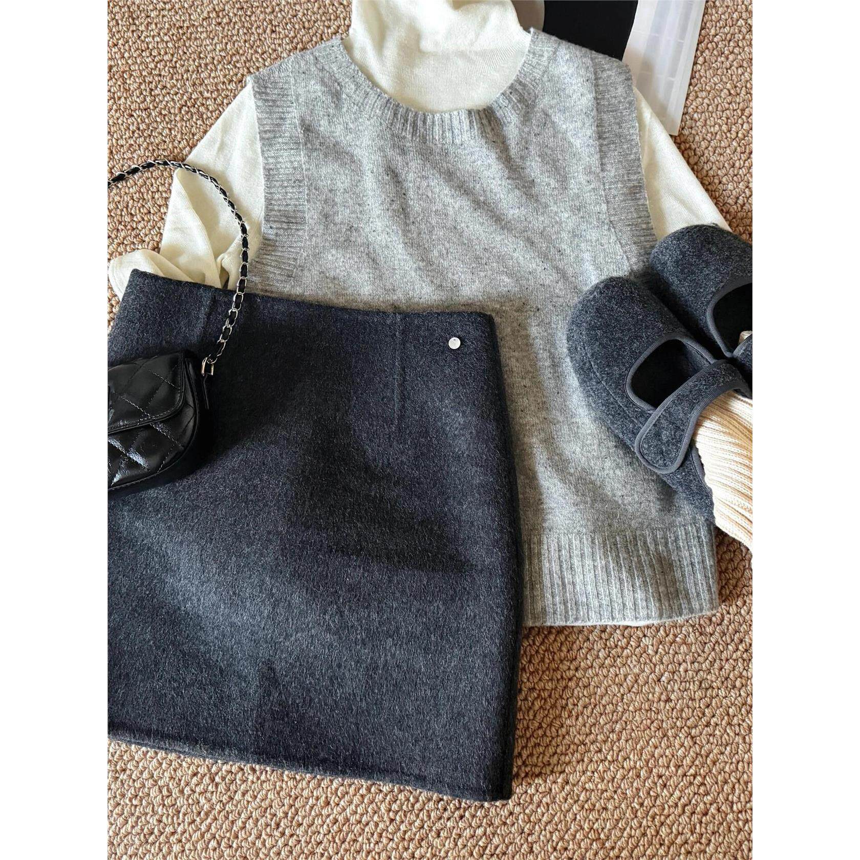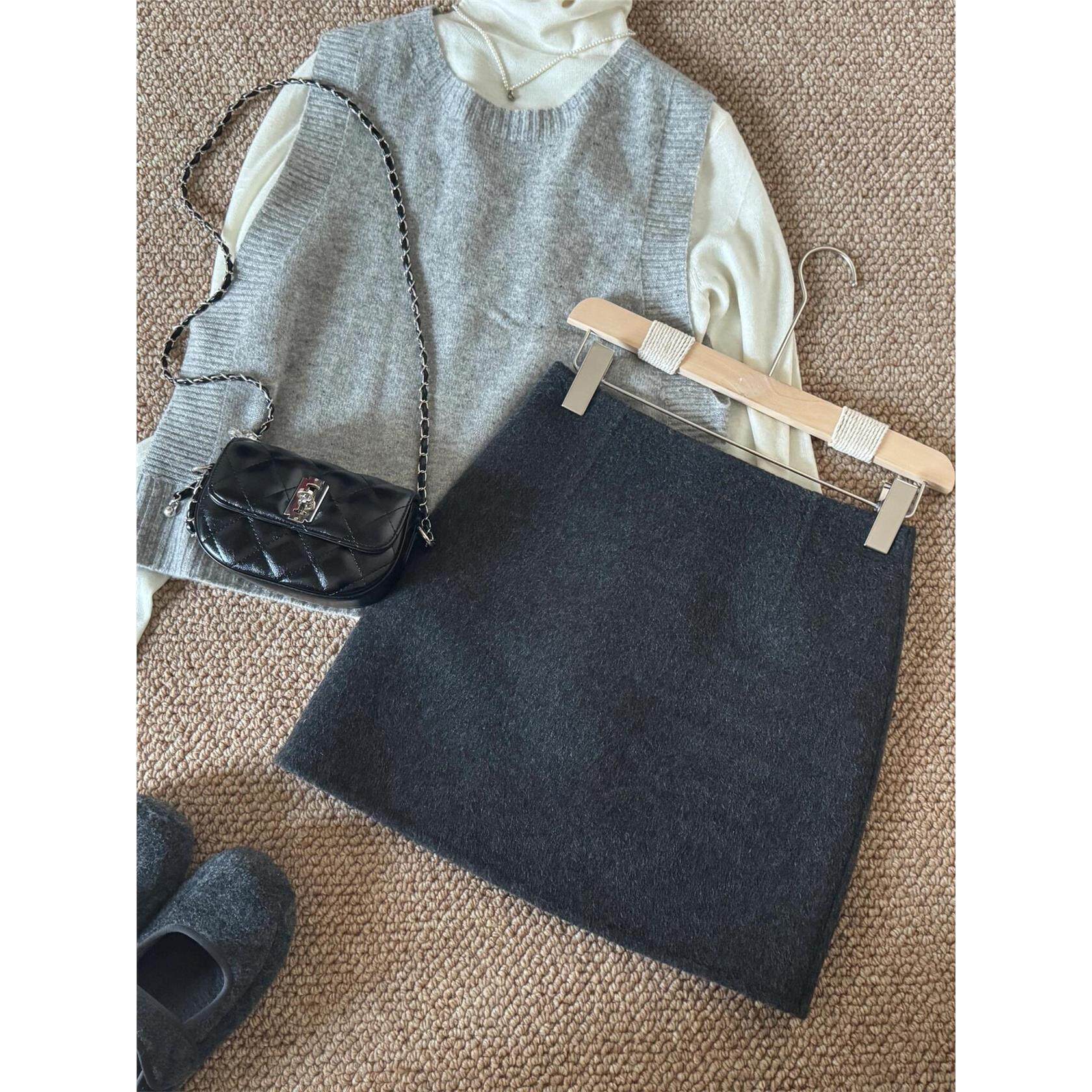 高级感纯色毛呢半身裙女灰色短裙2025秋冬韩系简约百搭A字包臀裙
