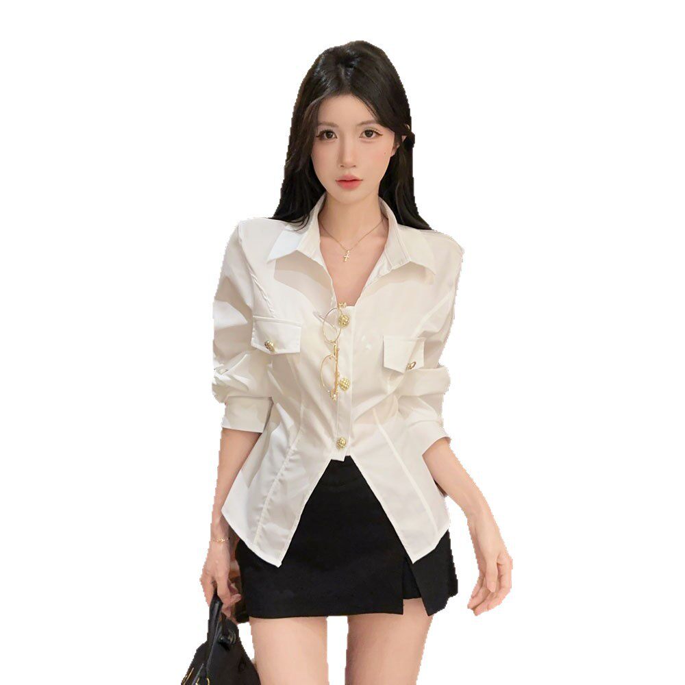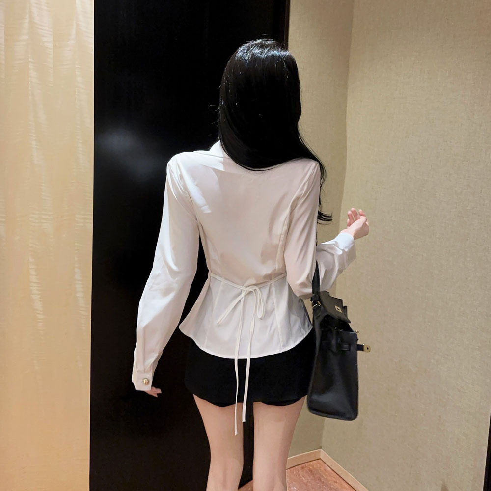 欧美2026跨境外贸简约气质纯色Polo领长袖衬衫上衣女
