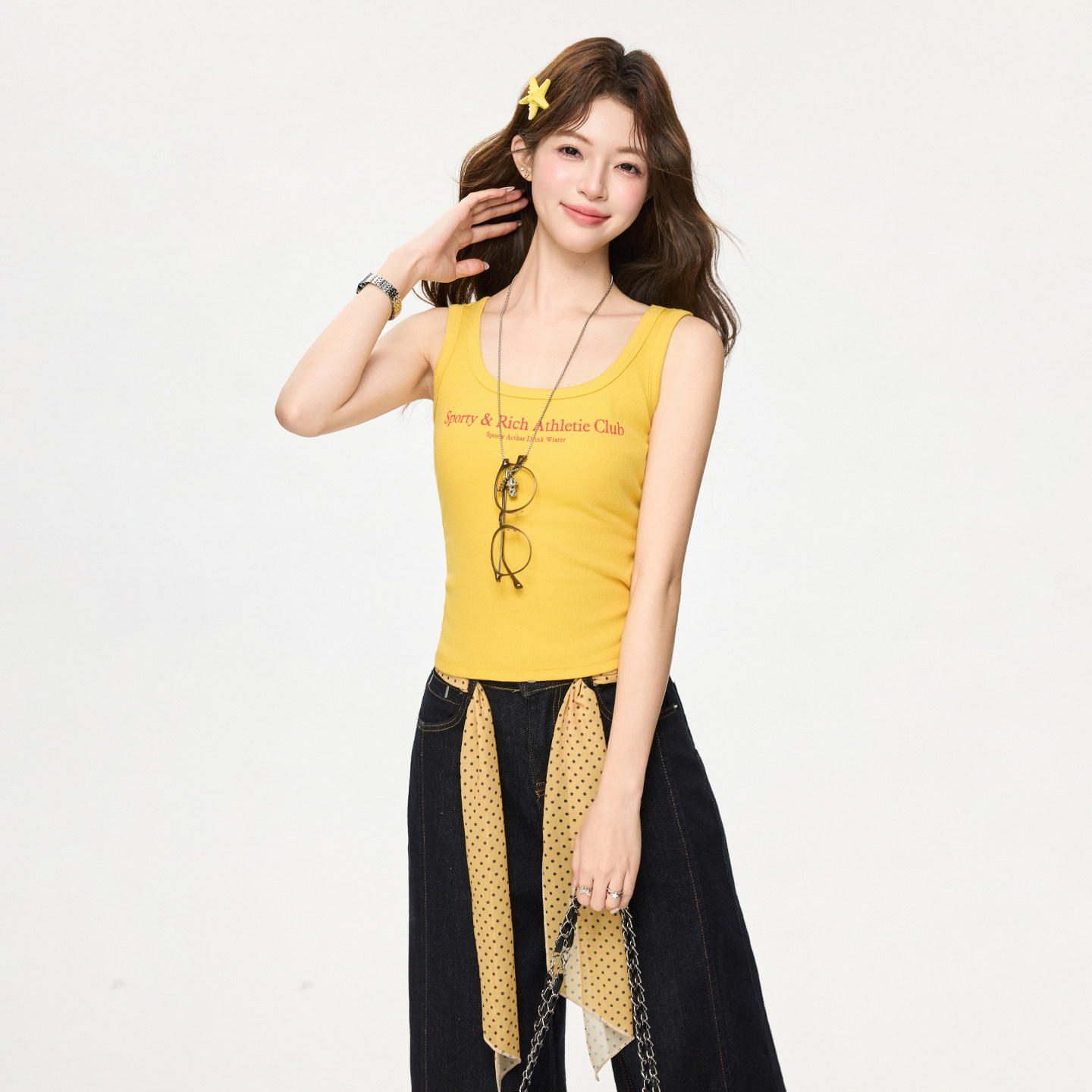 实拍实价美式背心女内搭外穿2026春季新款黄色酷辣小吊带无袖上衣