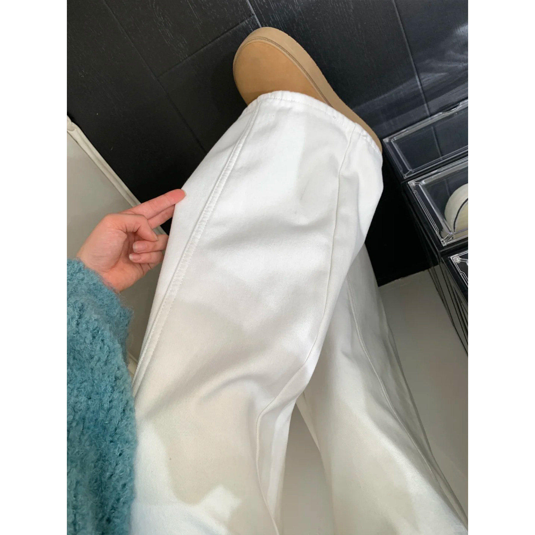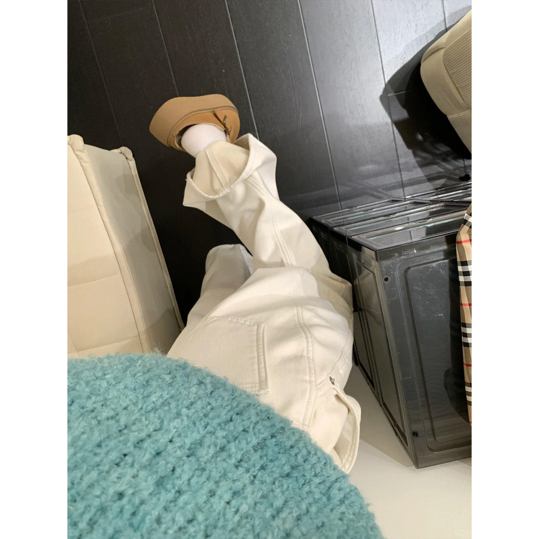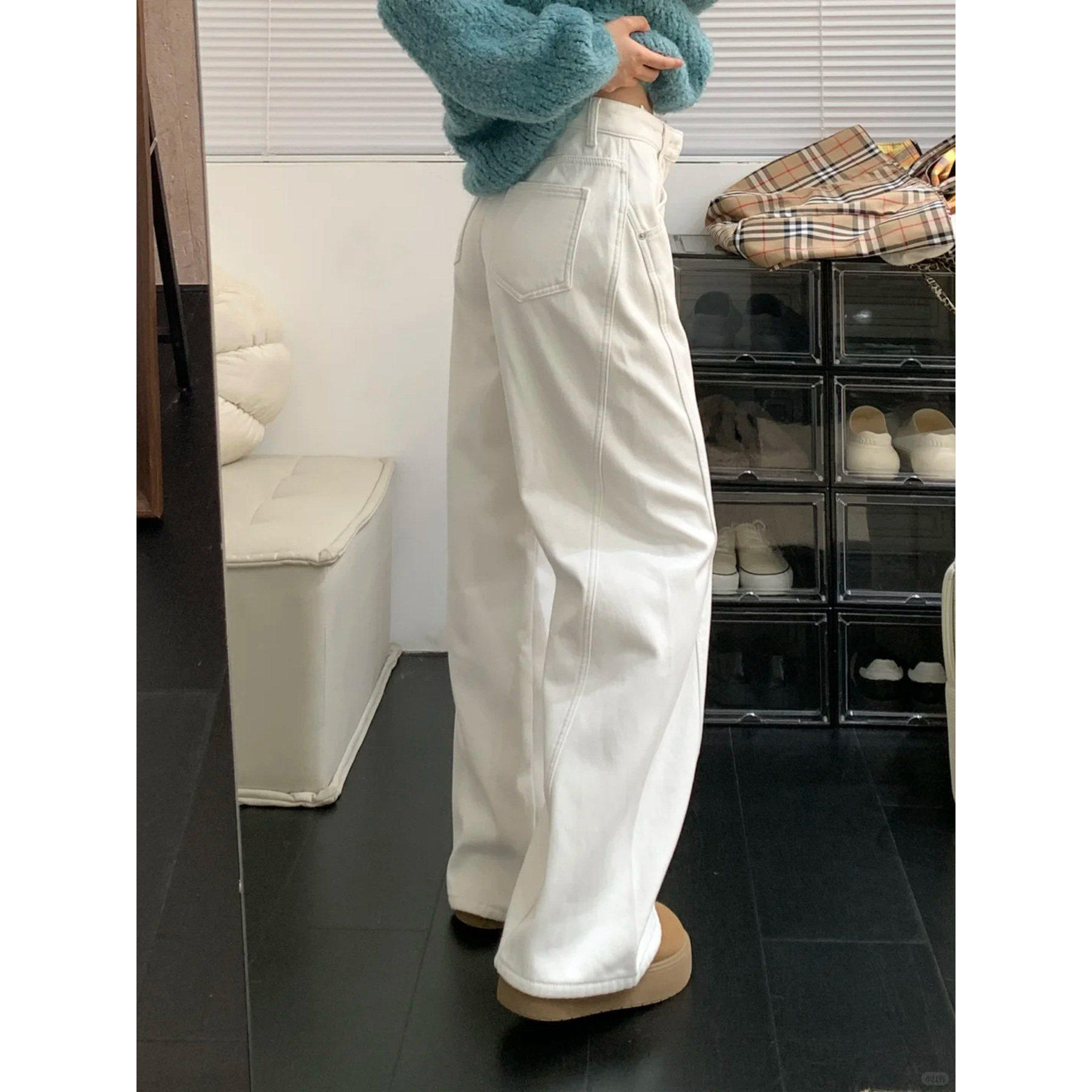 加绒加厚白色高腰阔腿牛仔裤女冬季2025新款宽松显瘦直筒拖地裤子