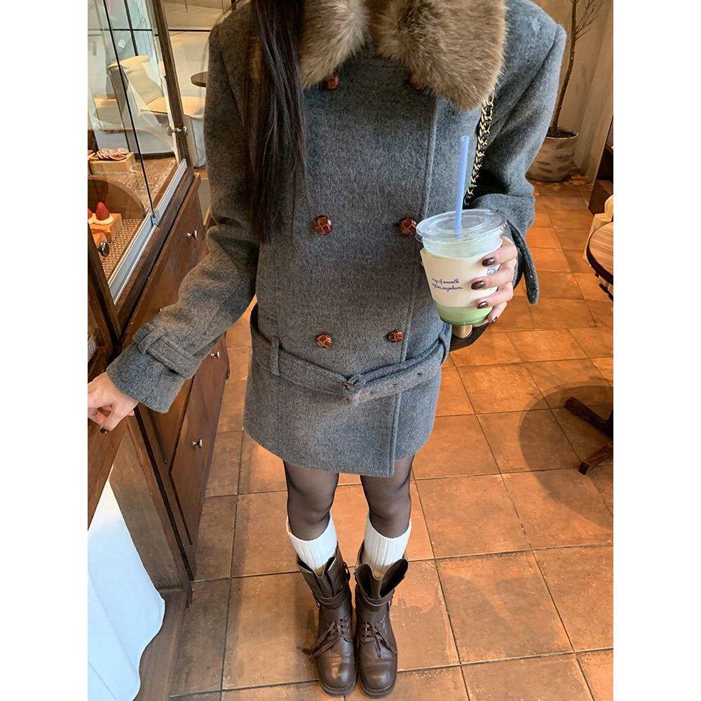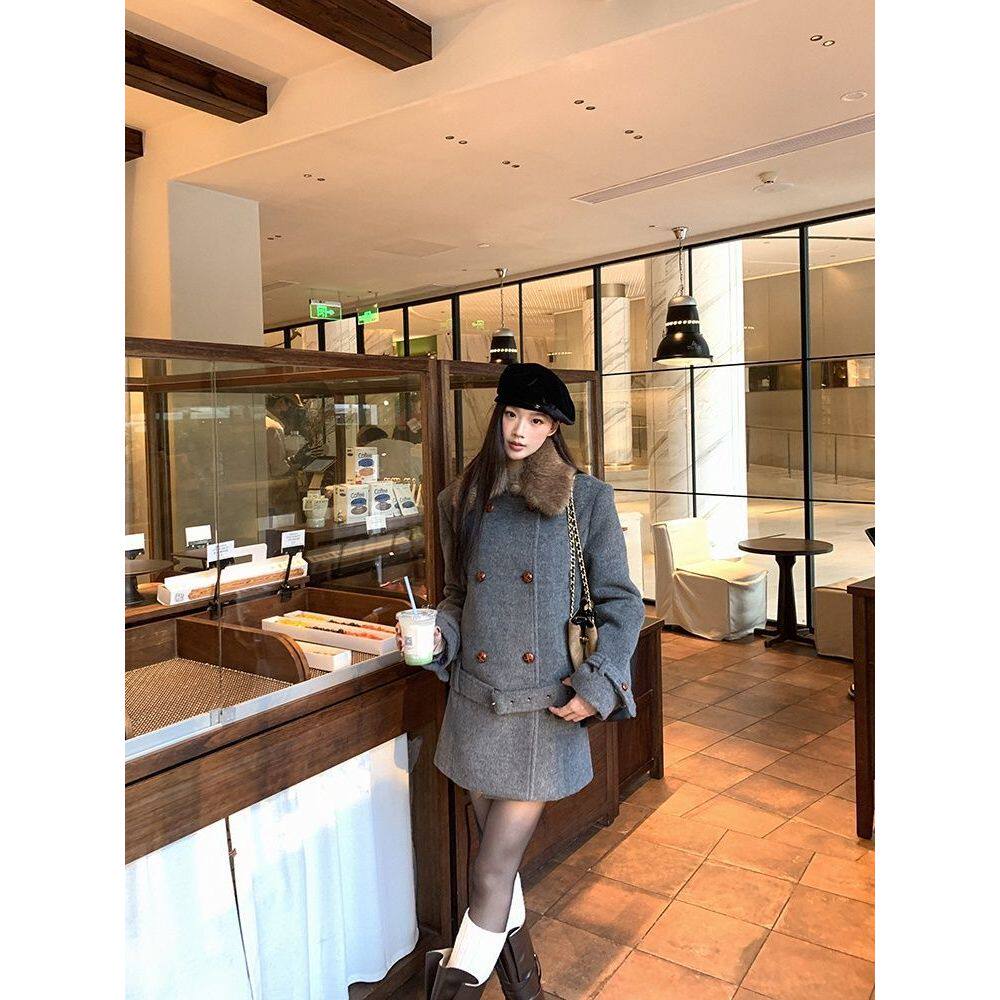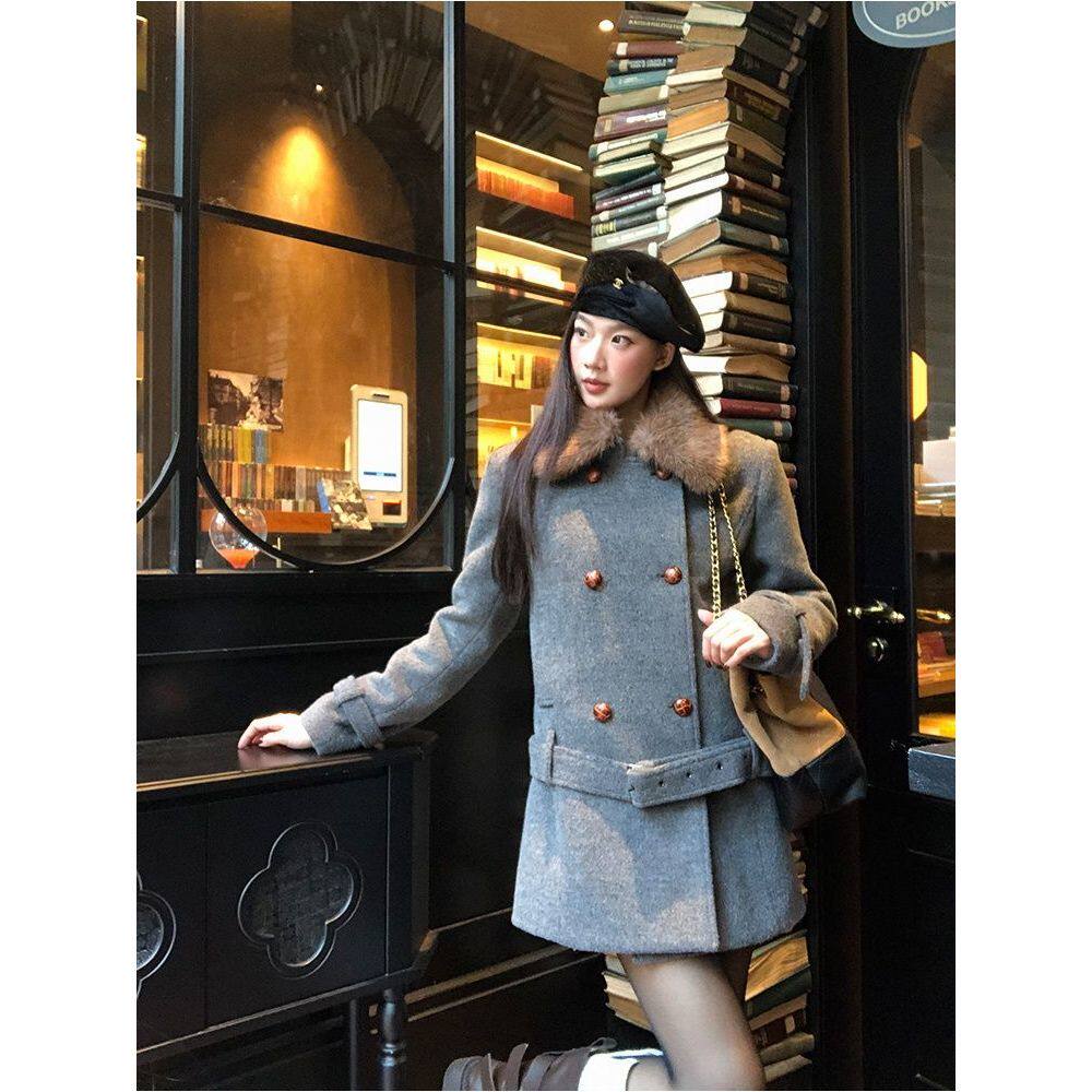 【旧巷拾光】复古高级秋冬毛领双排扣毛呢外套收腰千金呢子大衣女