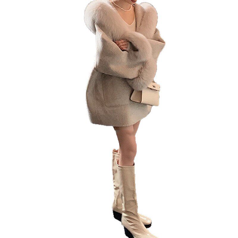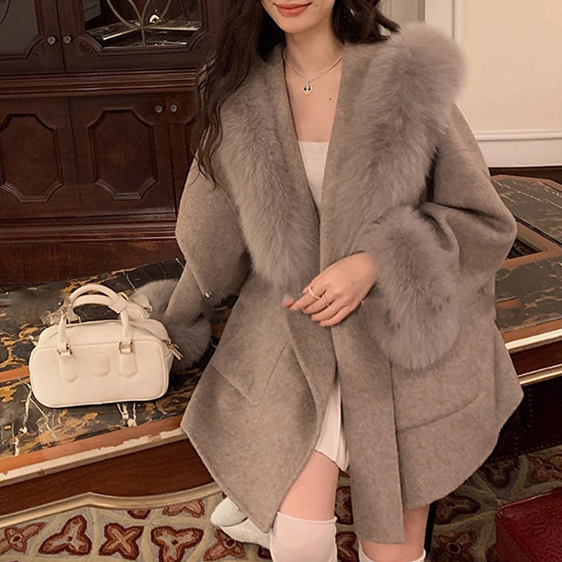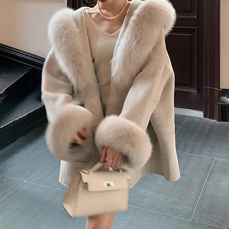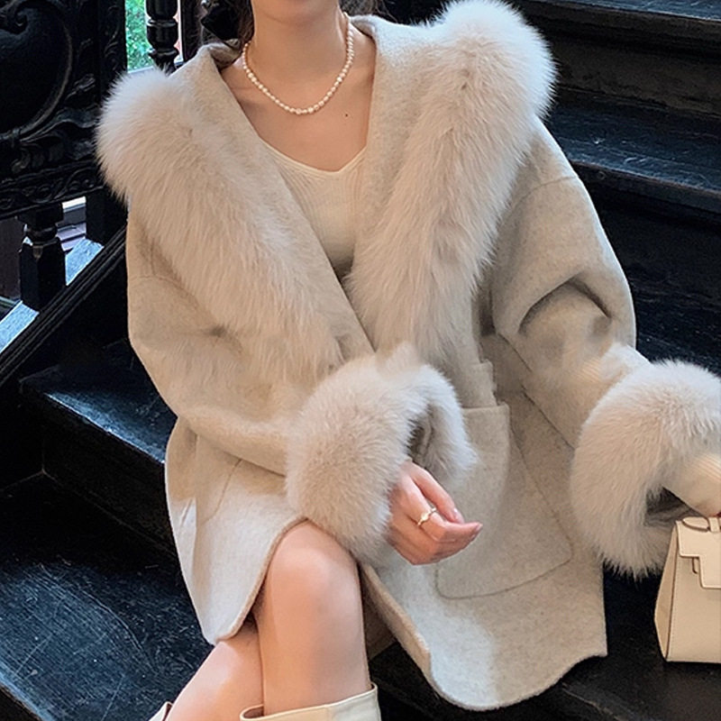 沪上千金~狐狸毛领连帽羊毛大衣外套女款2025新款冬装呢子上衣潮