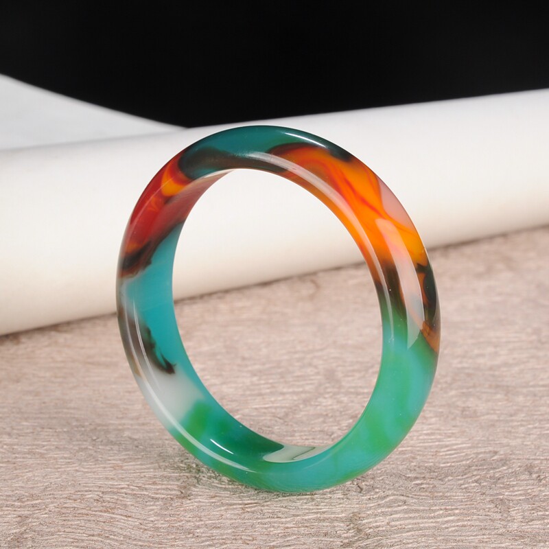金丝玉红绿手镯玉石玉器女款七彩玉三色镯子加宽加厚宽版手饰