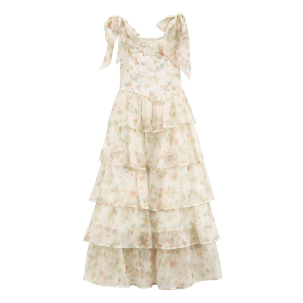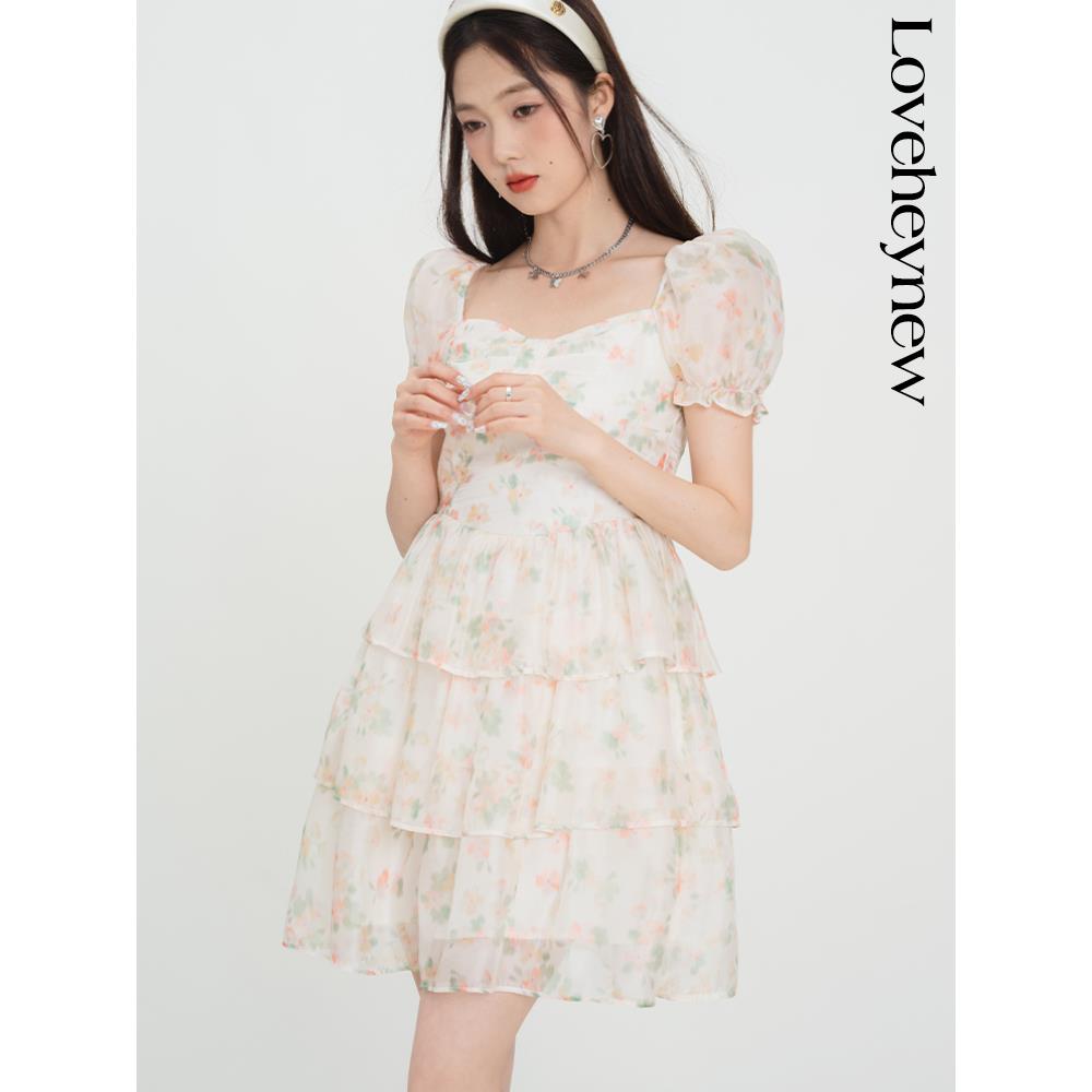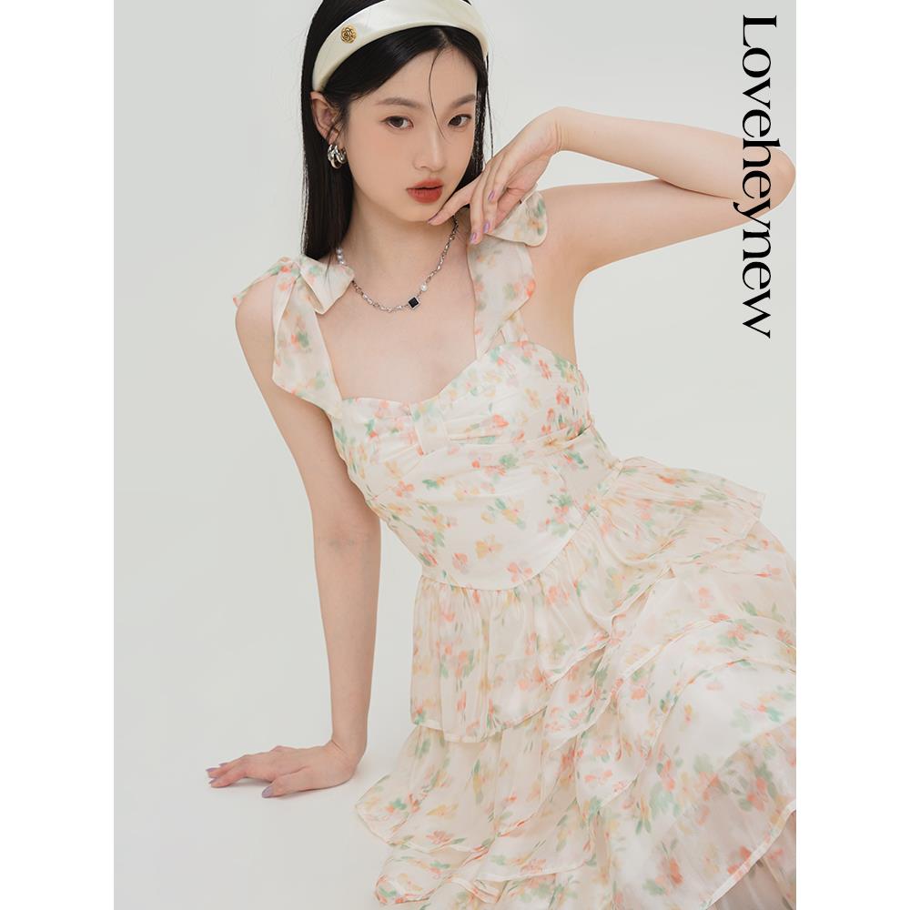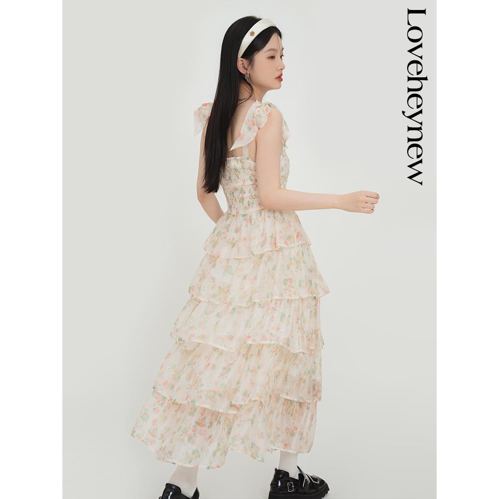 LOVEHEYNEW蝴蝶结碎花连衣裙女春夏季设计感显瘦蛋糕裙仙女裙子