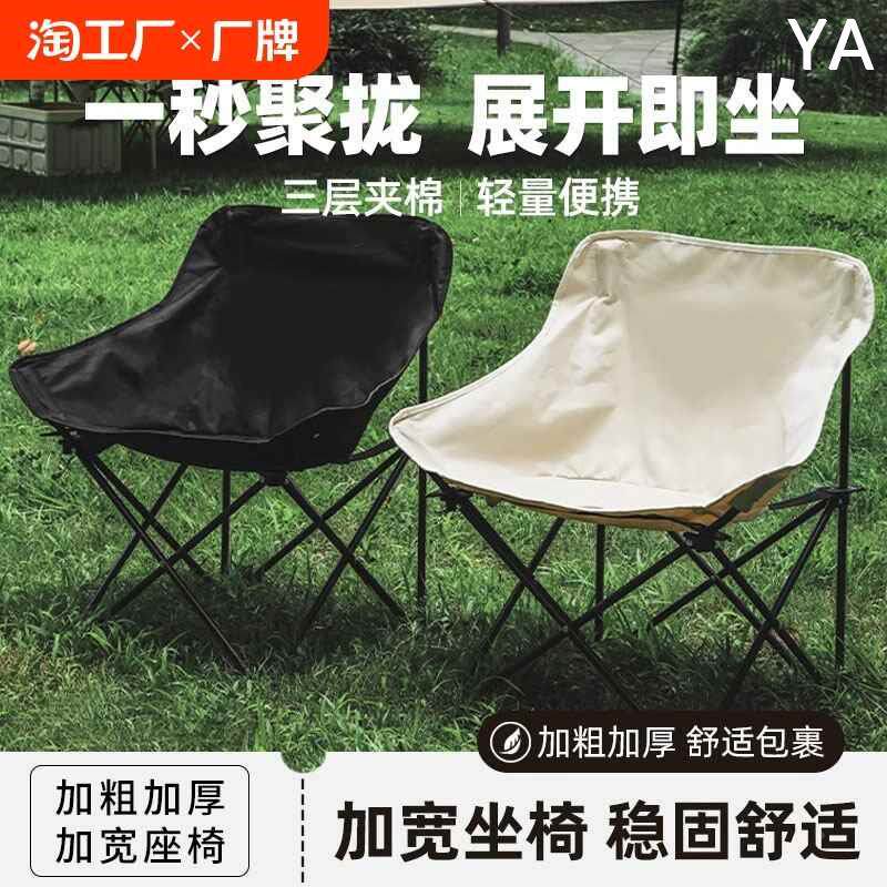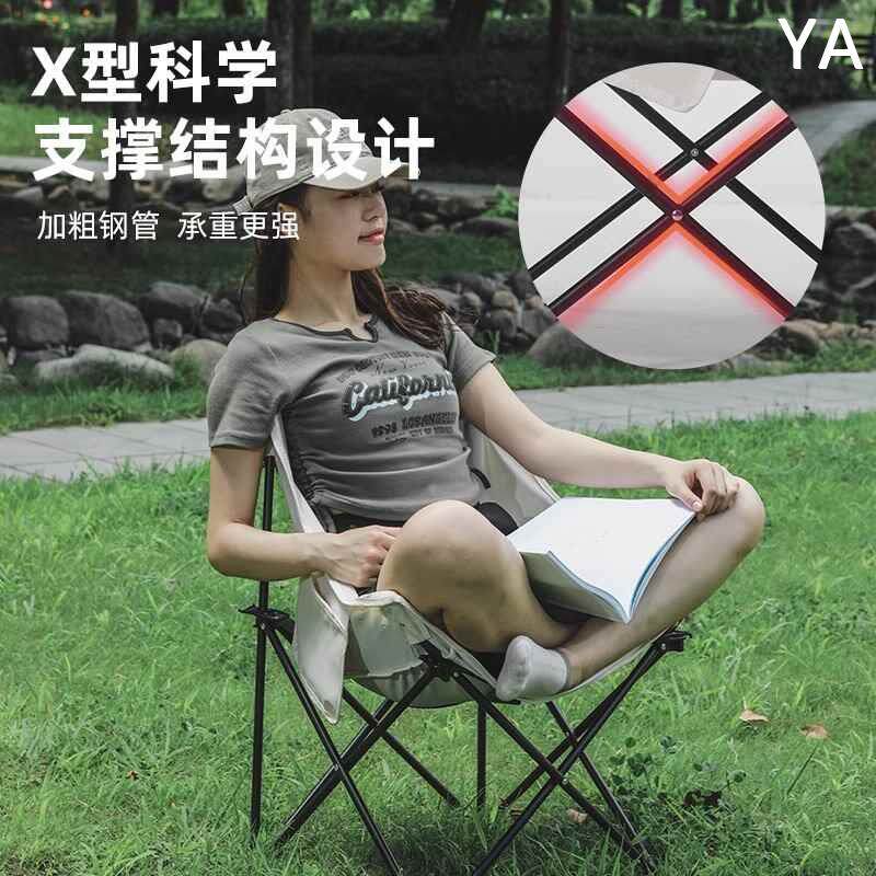 户外折叠椅加高月亮椅露营椅子便携板凳钓鱼沙滩躺椅野餐椅子新款