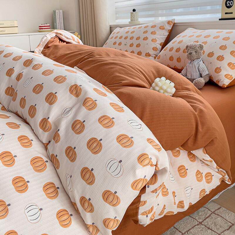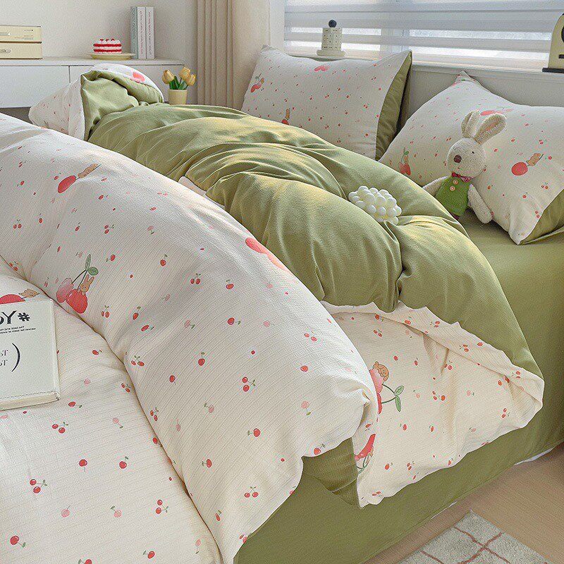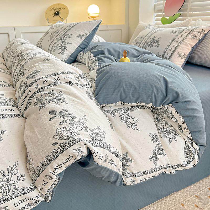 提花双层纱小竺棉四件套复古小清新印花床单被套床笠床上用品