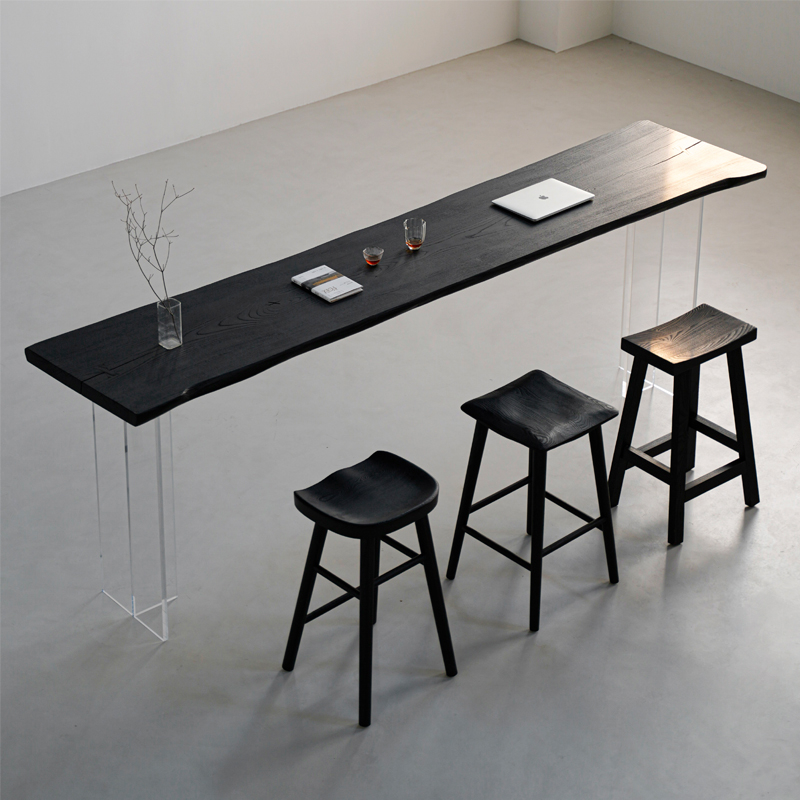 侘寂风黑色实木吧台椅简约家用白蜡木高脚凳吧台凳原木靠背休闲椅