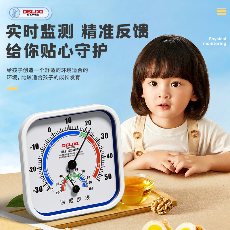 德力西高精度温湿度计家用室内婴儿房精准温度计挂壁式温度湿度表