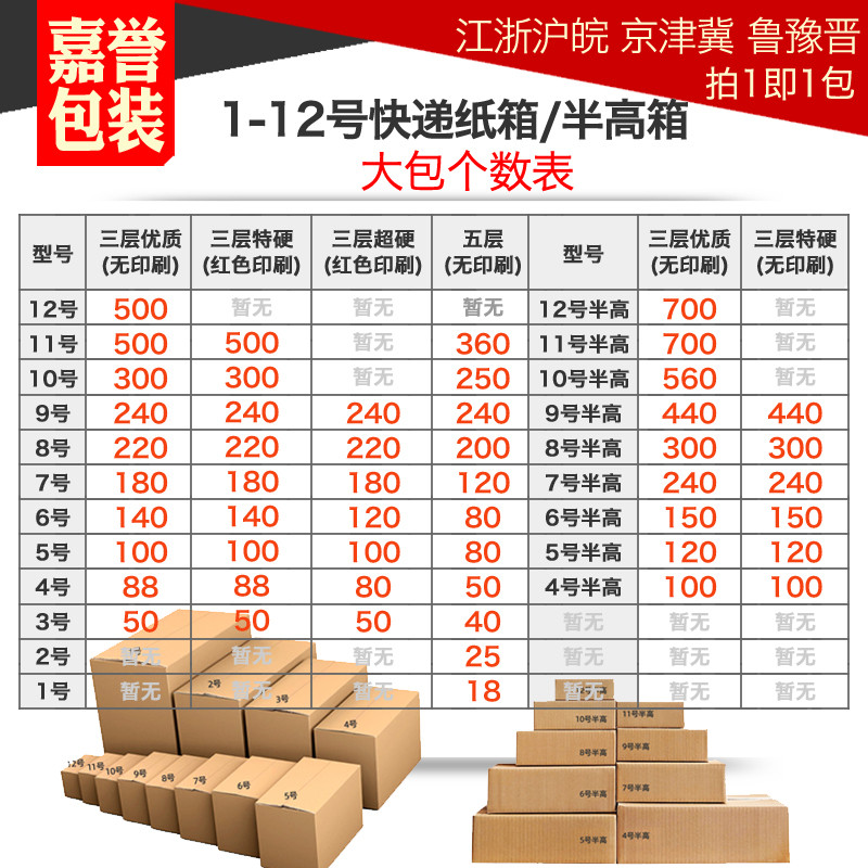 嘉誉包装大包纸箱批发淘宝发货打包箱子快递盒子定制三层1-12号箱