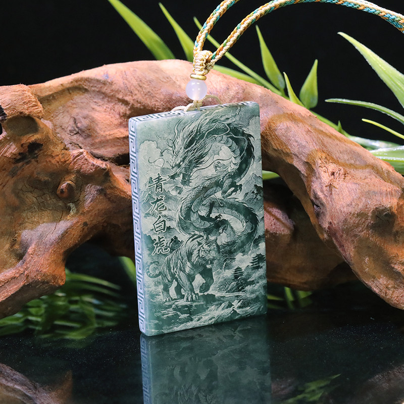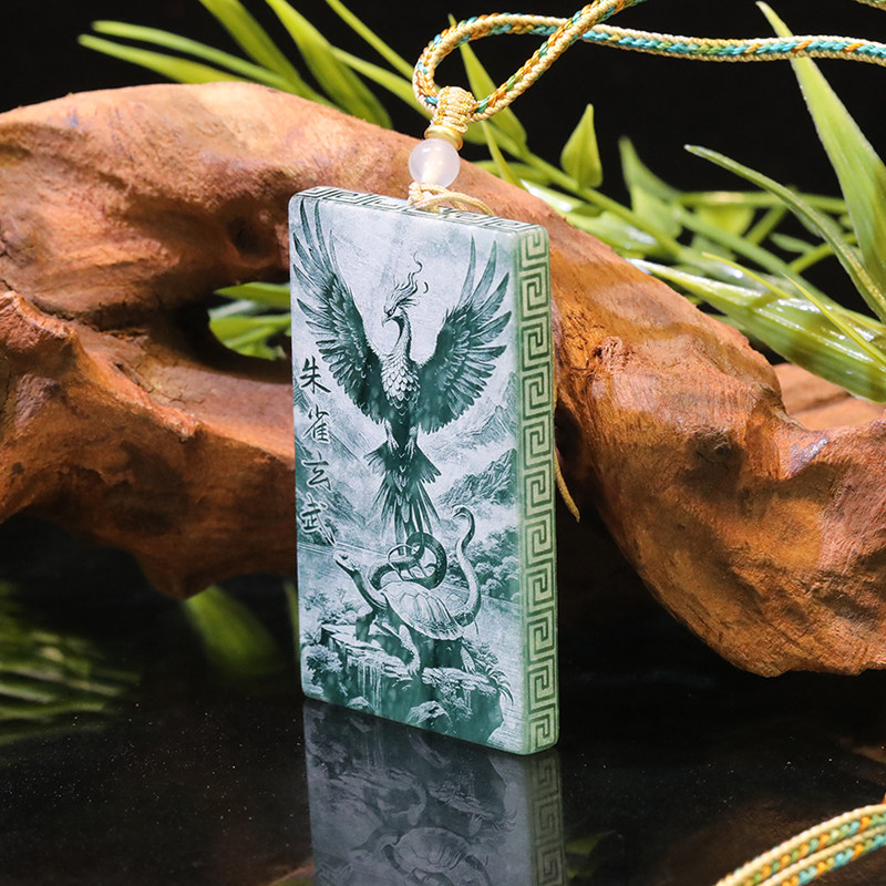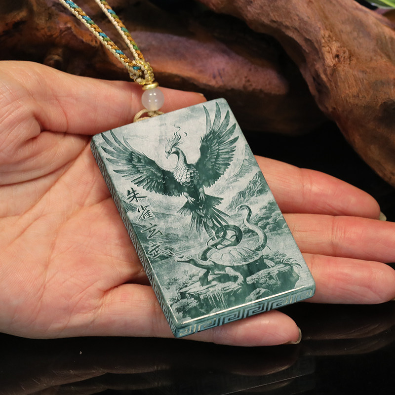 首页> 配饰> 唐今玉天然A货翡翠四大神兽蓝水双面精工影雕高冰种老玉石吊坠玉