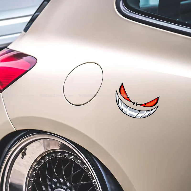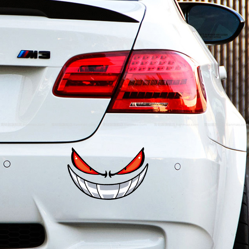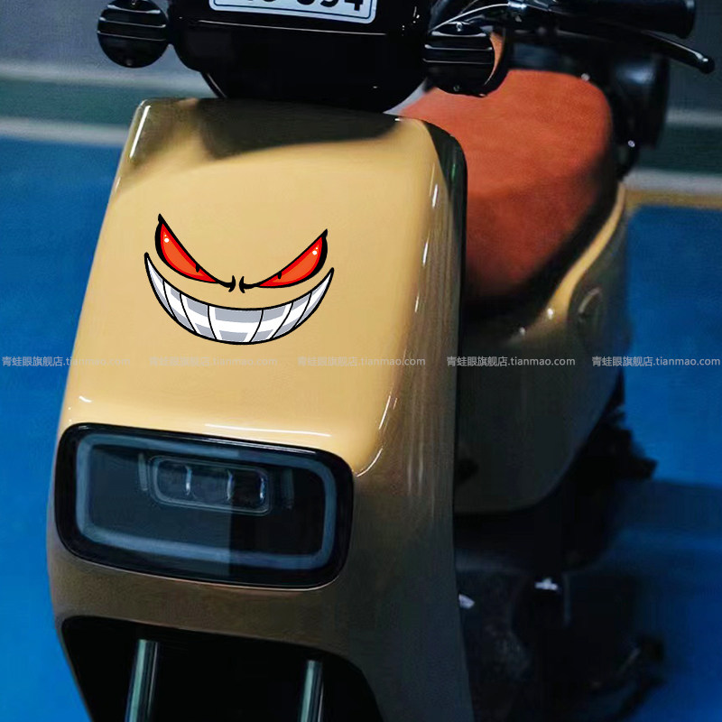 恶魔眼睛汽车贴纸个性表情贴电动机车摩托车头反光贴防水装饰贴