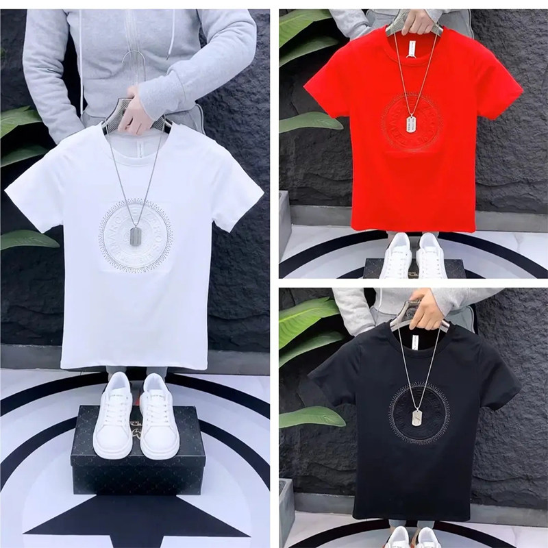 男士短袖T恤夏季新款韩版修身时尚简约暗皱圆领弹力紧身小码半袖