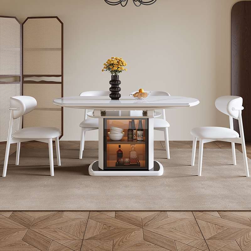 雅麦嘉轻奢岩板现餐桌代简约小户型实木储物方圆两用饭桌可伸缩