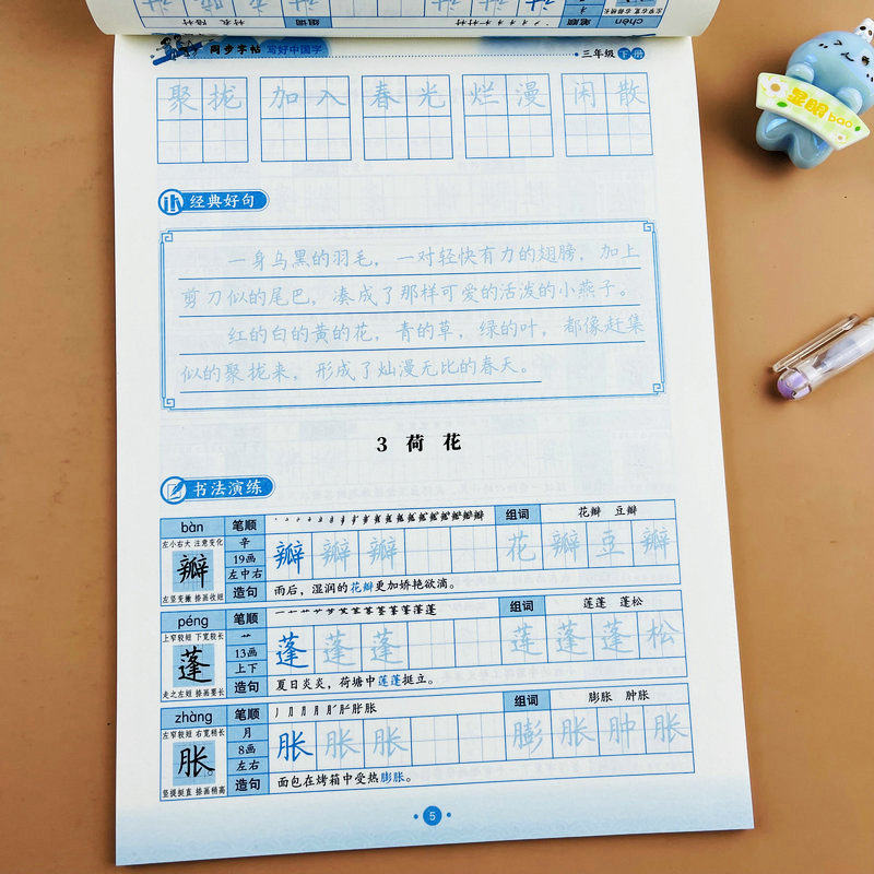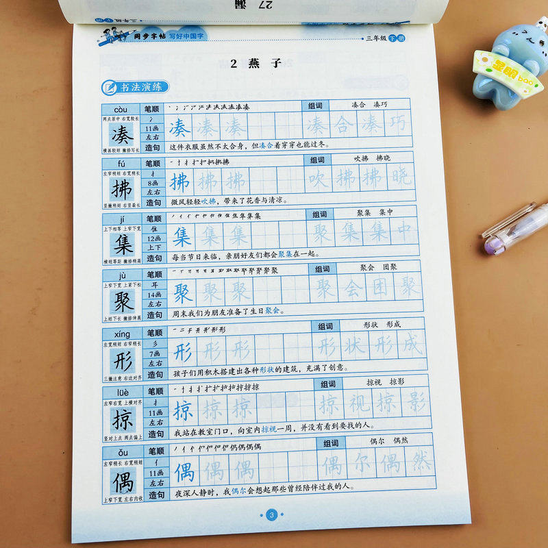 小学语文同步字帖三年级下册人教版课本生字同步练字帖带拼音笔顺组词造句写好中国字写字课课练书法演练孔壁训练描红本学练一体