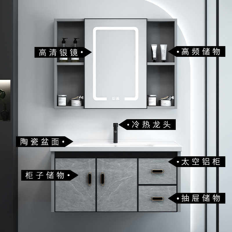 太空铝浴室柜挂墙式洗脸盆柜组合一体陶瓷卫生间洗手池洗漱台