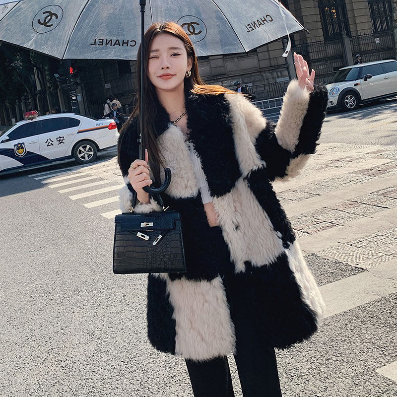 轻奢皮毛一体大衣托卡皮草外套女2023新款托斯卡纳中长款毛毛冬季