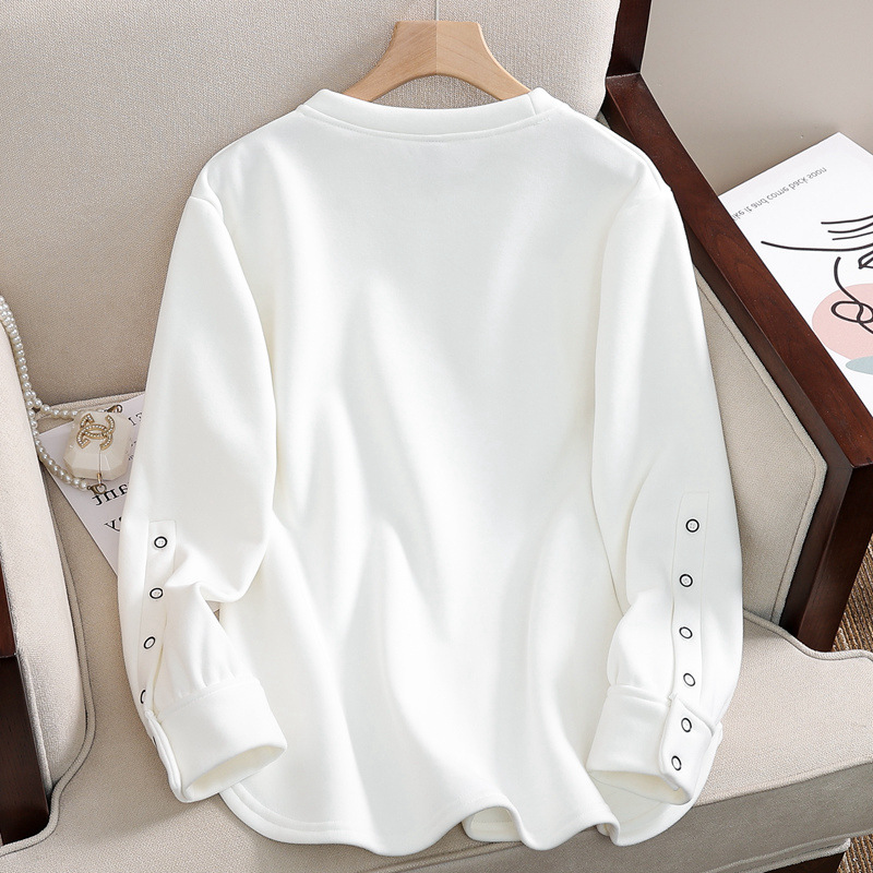 纯棉宽松大码创意设计感长袖卫衣t恤女春秋冬装新款加绒打底衫