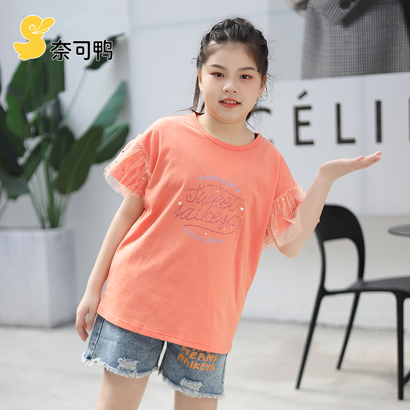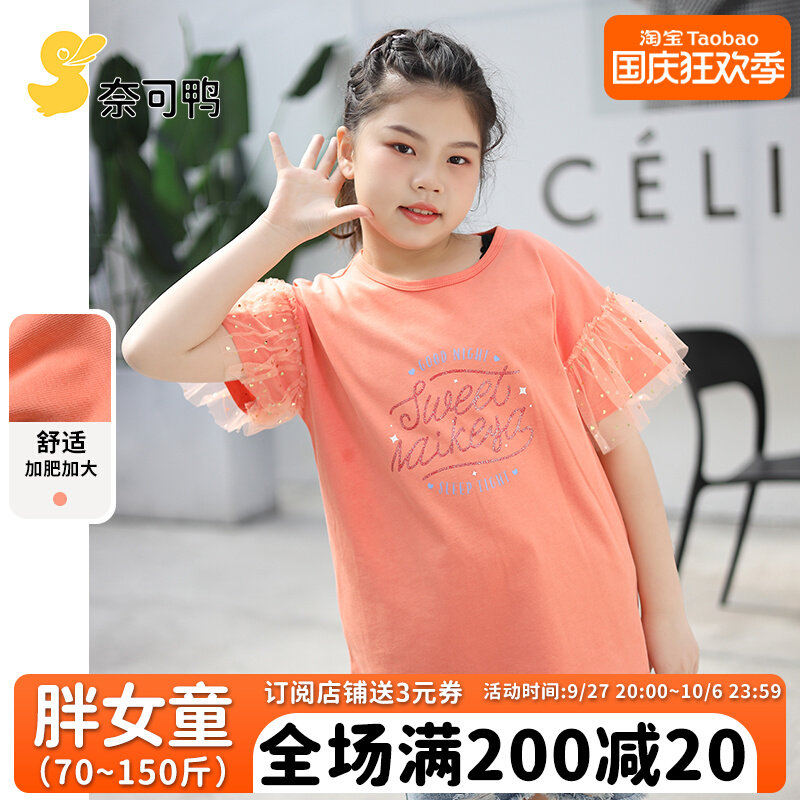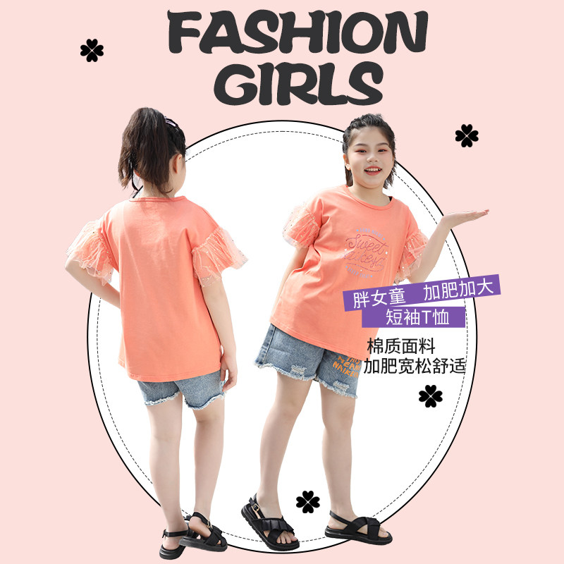 胖女童加肥加大短袖T恤纯棉胖女孩中大童大尺码宽松时尚洋派上衣
