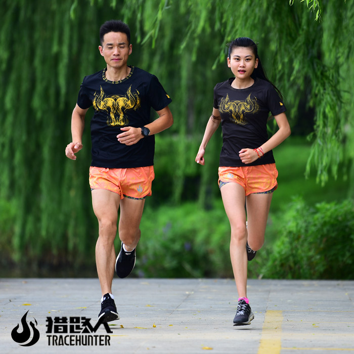 猎路人户外跑步训练速干透气内衬防磨防泼水反光男士运动短裤橘络