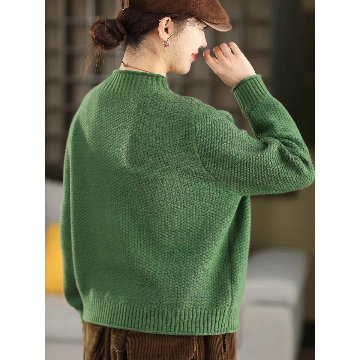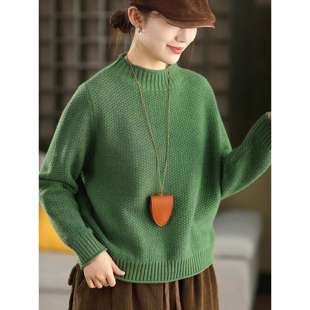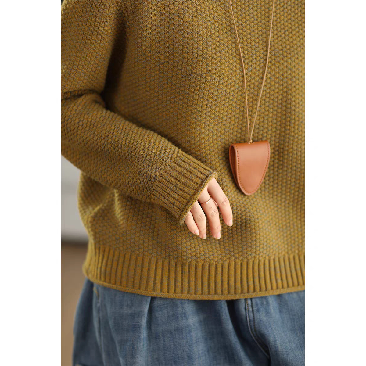 2025冬季菠萝针织双股全棉线毛衣半高领加厚套头气质上衣